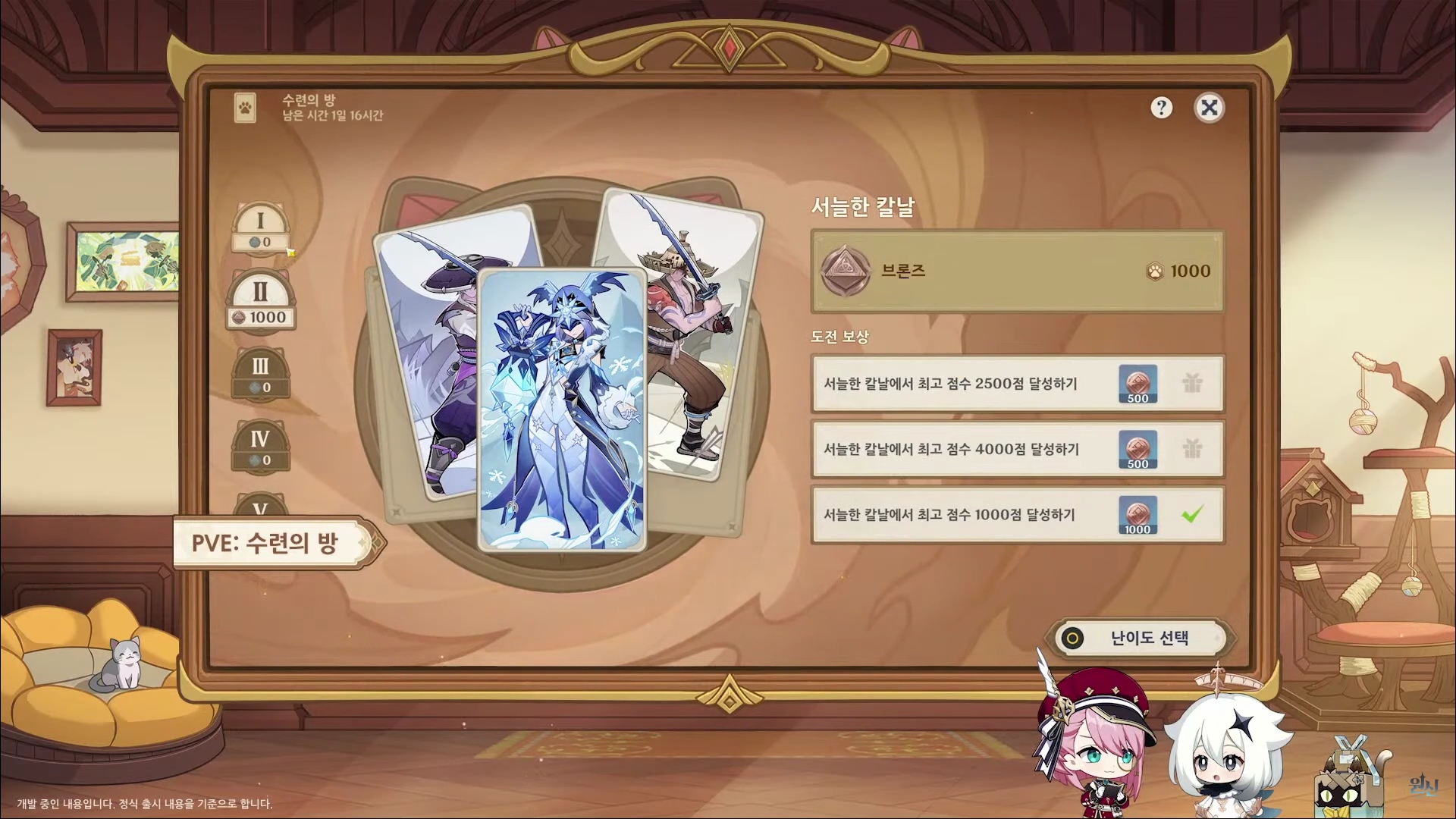 - 보상 : 원석, 특성 육성 소재, 축복의 연고, 정제용 마법 광물, 캐릭터 경험 소재, 모라