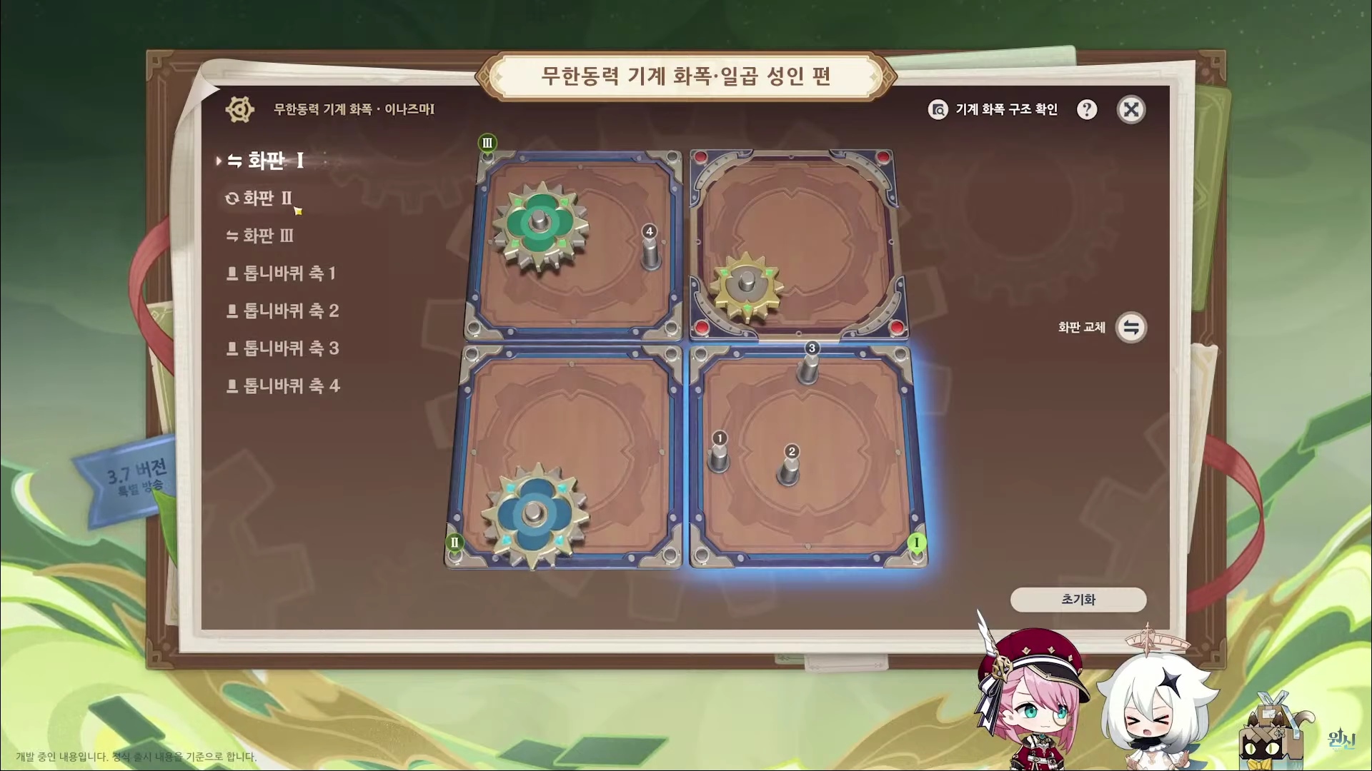 - 화판의 위치를 돌리고 톱니 바퀴를 배치하여 일곱 성인의 카드 커버를 복구