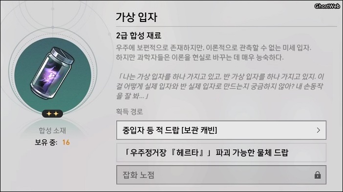 - 재료 : 플로지스톤 3개, 가상 입자 2개