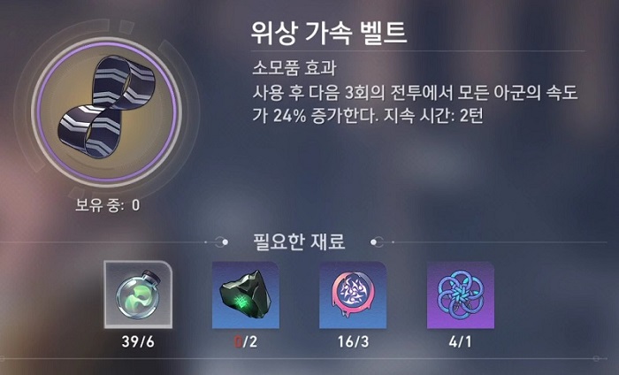 - 사용 후 다음 3회의 전투에서 모든 아군의 속도가 24% 증가한다.