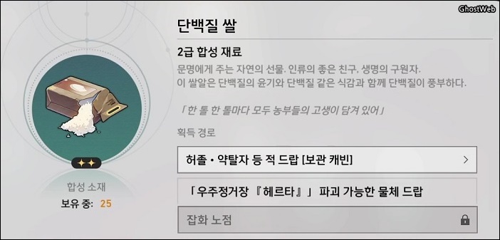 - 재료 : 가스성 유체 2개, 단백질 쌀 2개