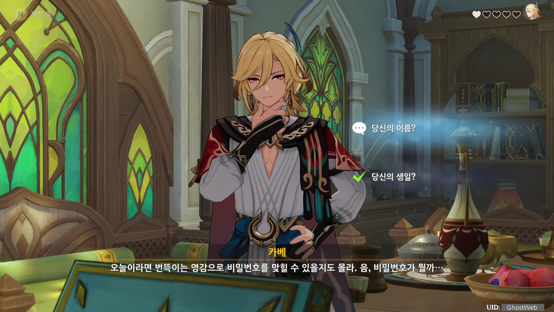 | [원신] 케이아 초대 이벤트 | 제1막 - 달콤함 술과 농담 (엔딩, 스토리 분기점 정리) (1) | 2023.10.04 |