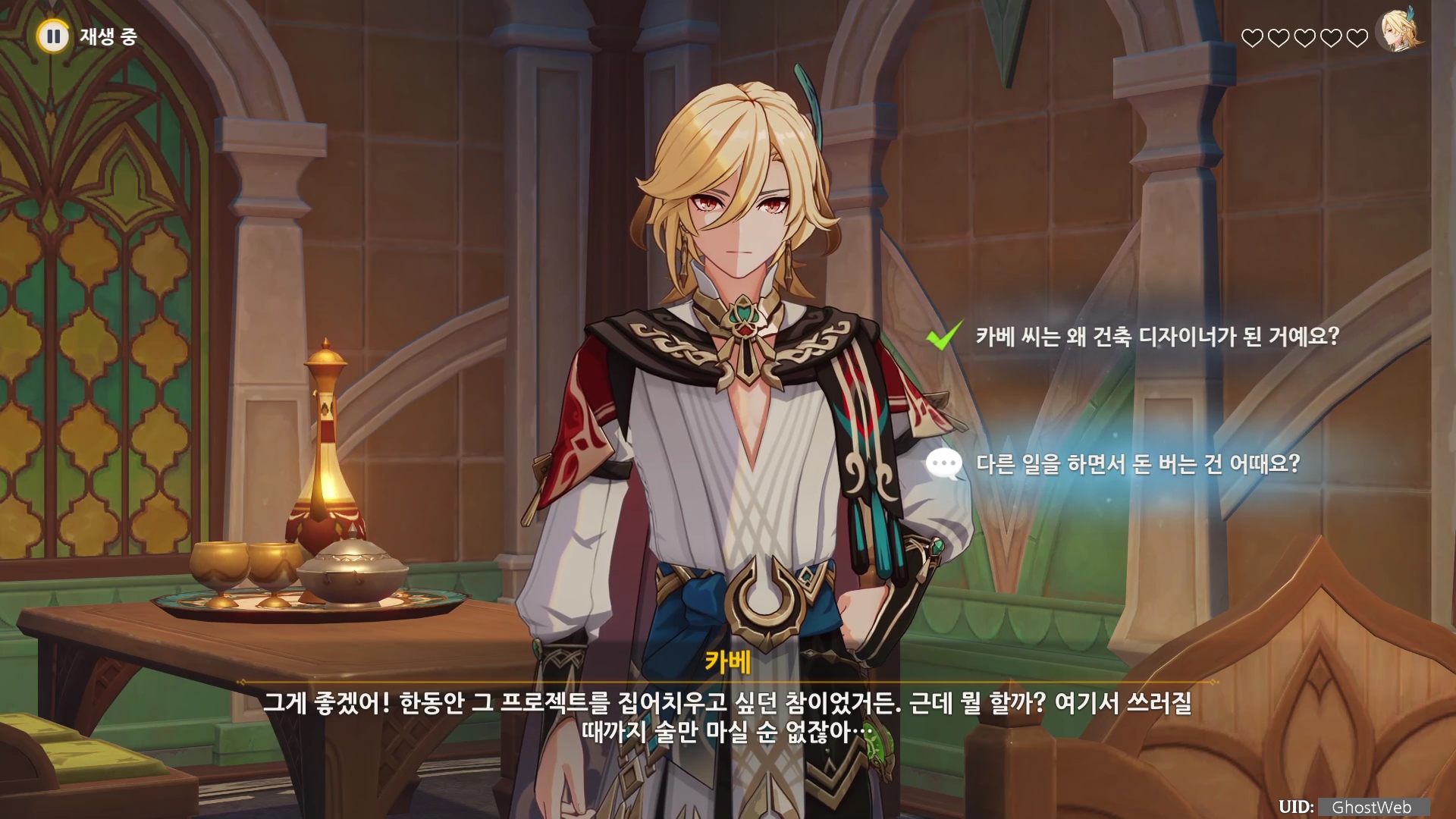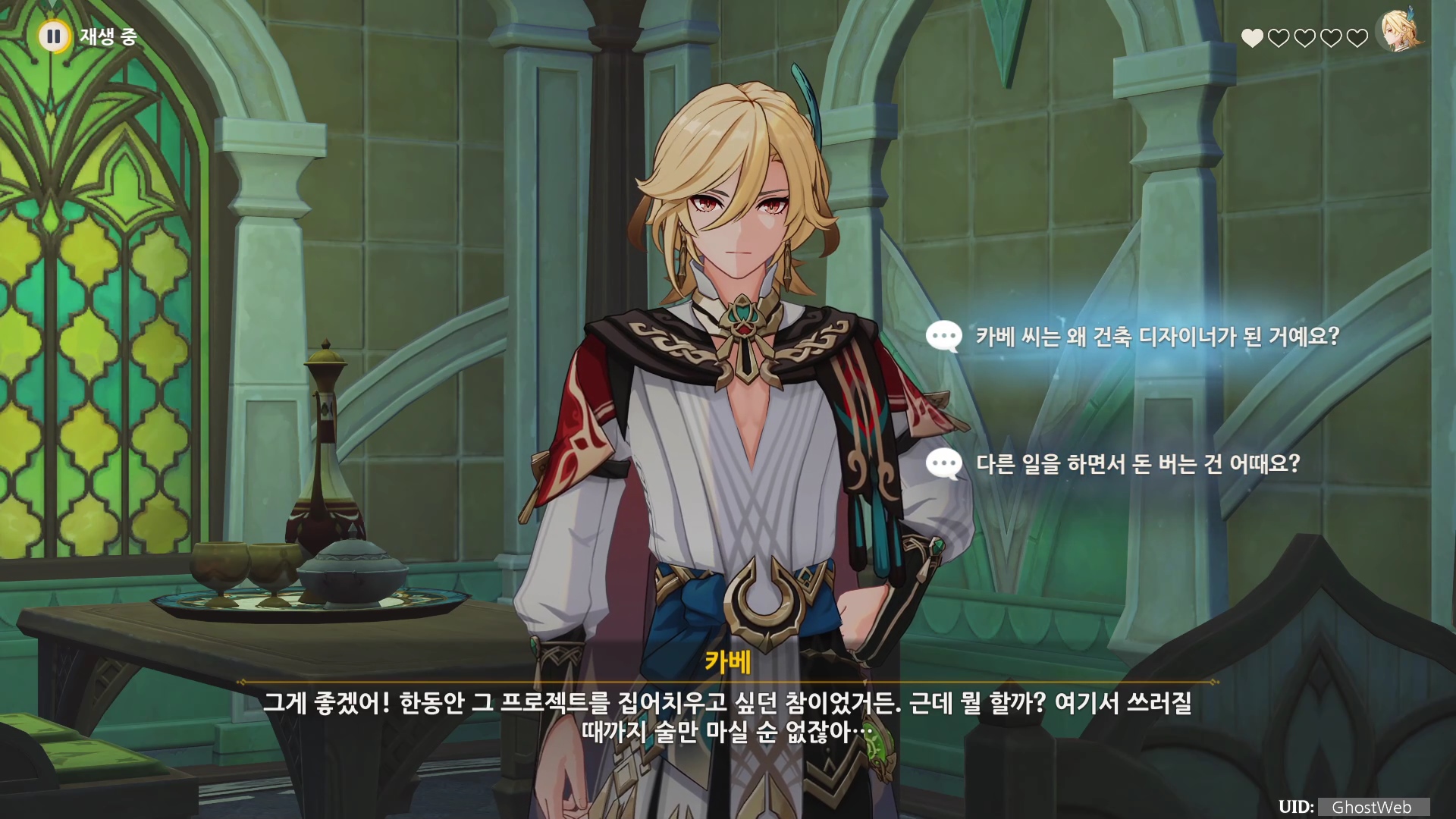 ※ 분기점 2 : 카베와 대화에서 [카베 씨는 왜 건축 디자이너가 된 거예요?] 선택