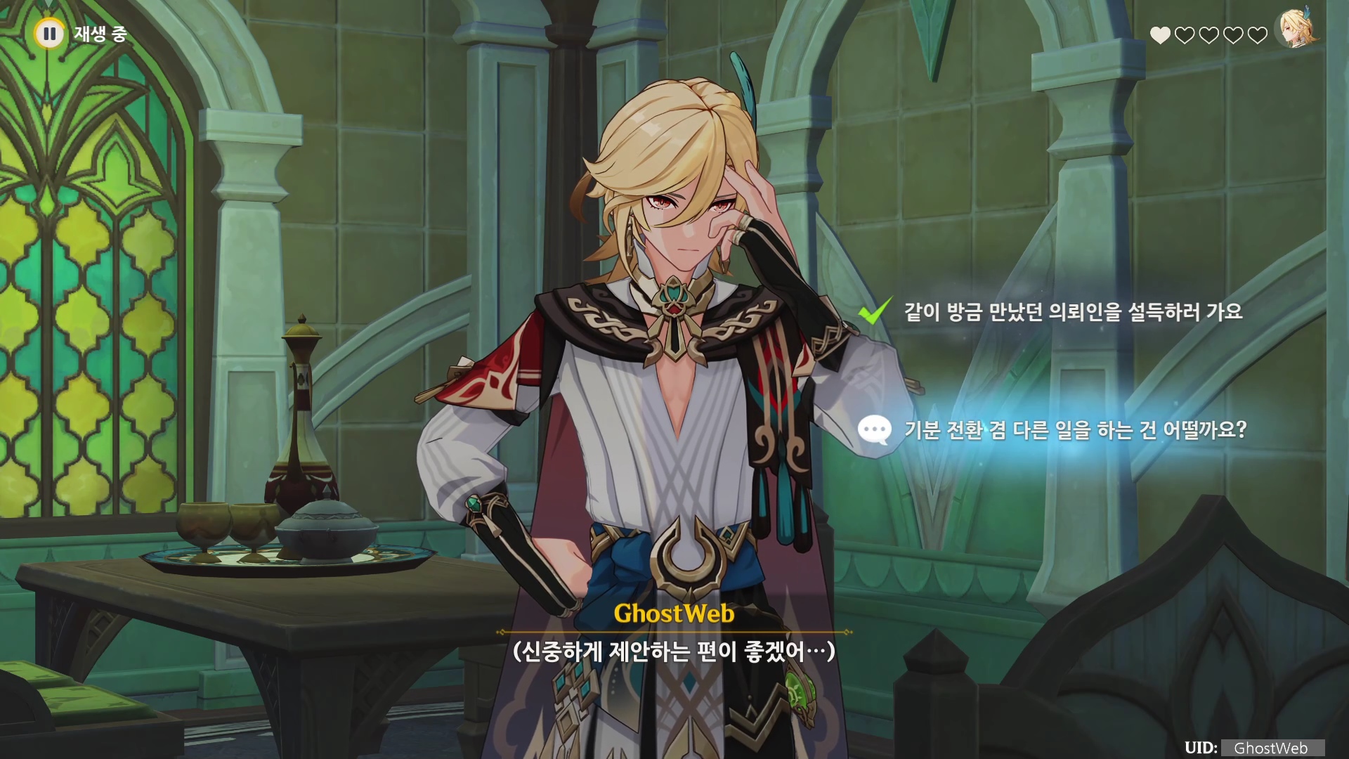 ※ 분기점 : 카베와 대화에서 [같이 방금 만났던 의로인을 설득하러 가요] 선택