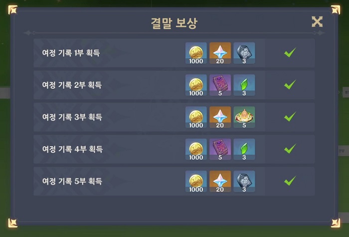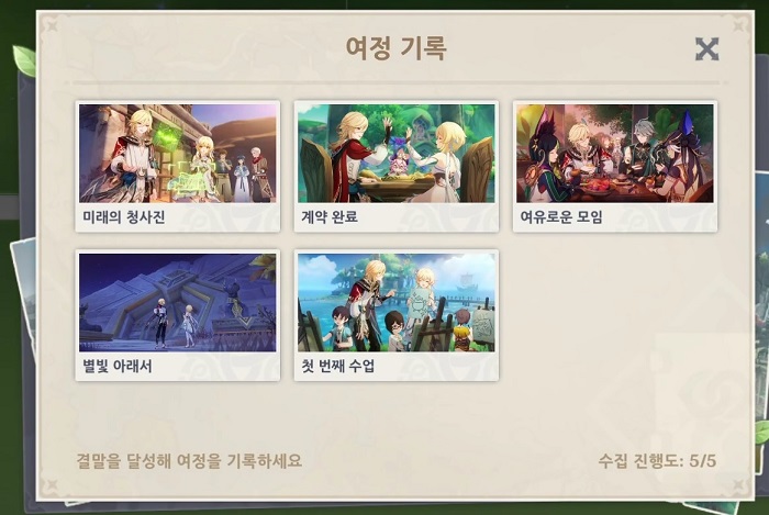카베 초대 이벤트 [제1막 - 불행과 행복의 시계추]은 총 5개의 여정 기록(엔딩)으로 나눠져 있으며, 각 엔딩을 볼 때마다 원석, 경험치 책 등의 보상을 얻을 수 있어요.