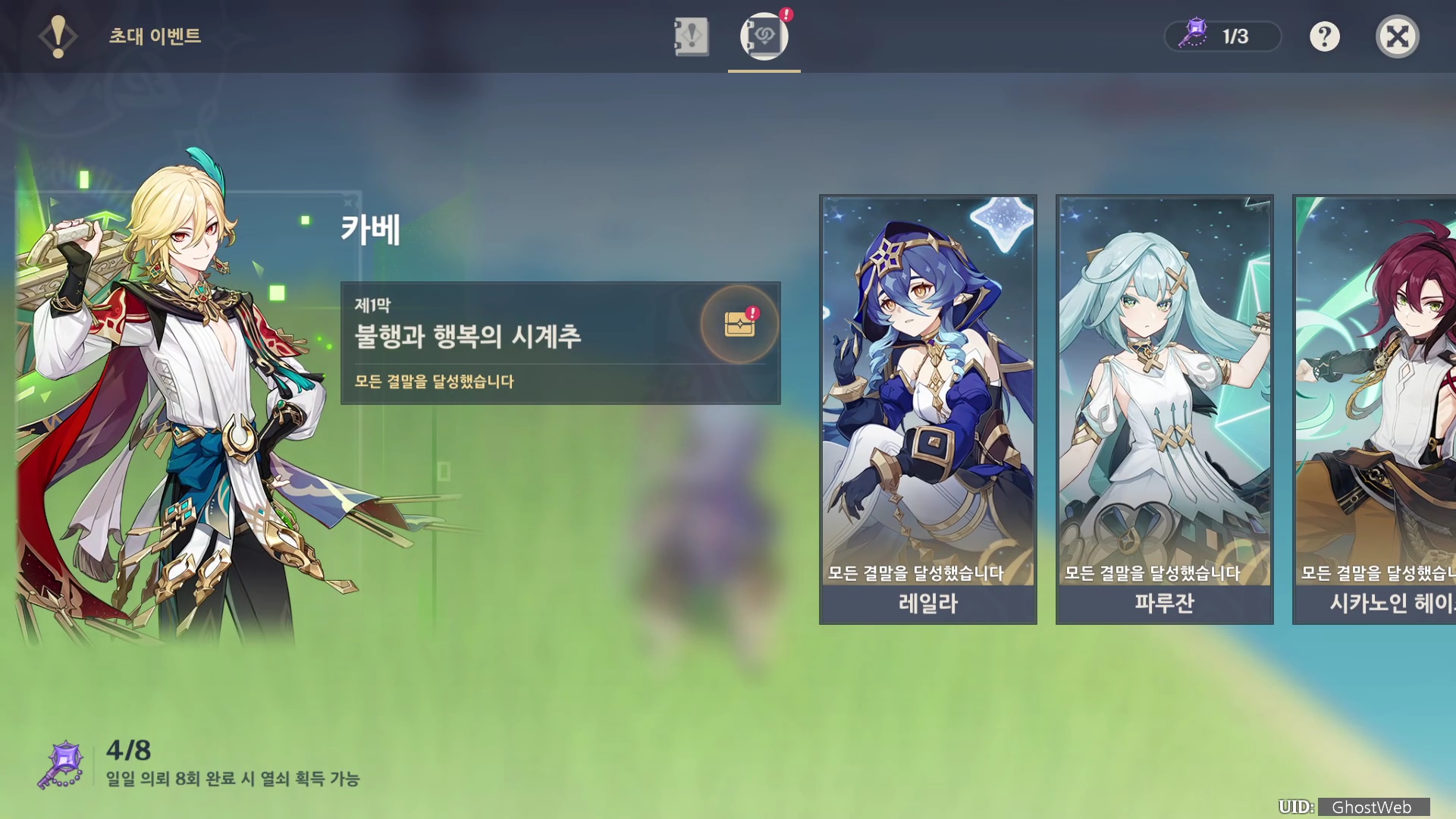 이번에는 카베 초대 이벤트 제1막 불행과 행복의 시계추를 정리해보도록 할게요.