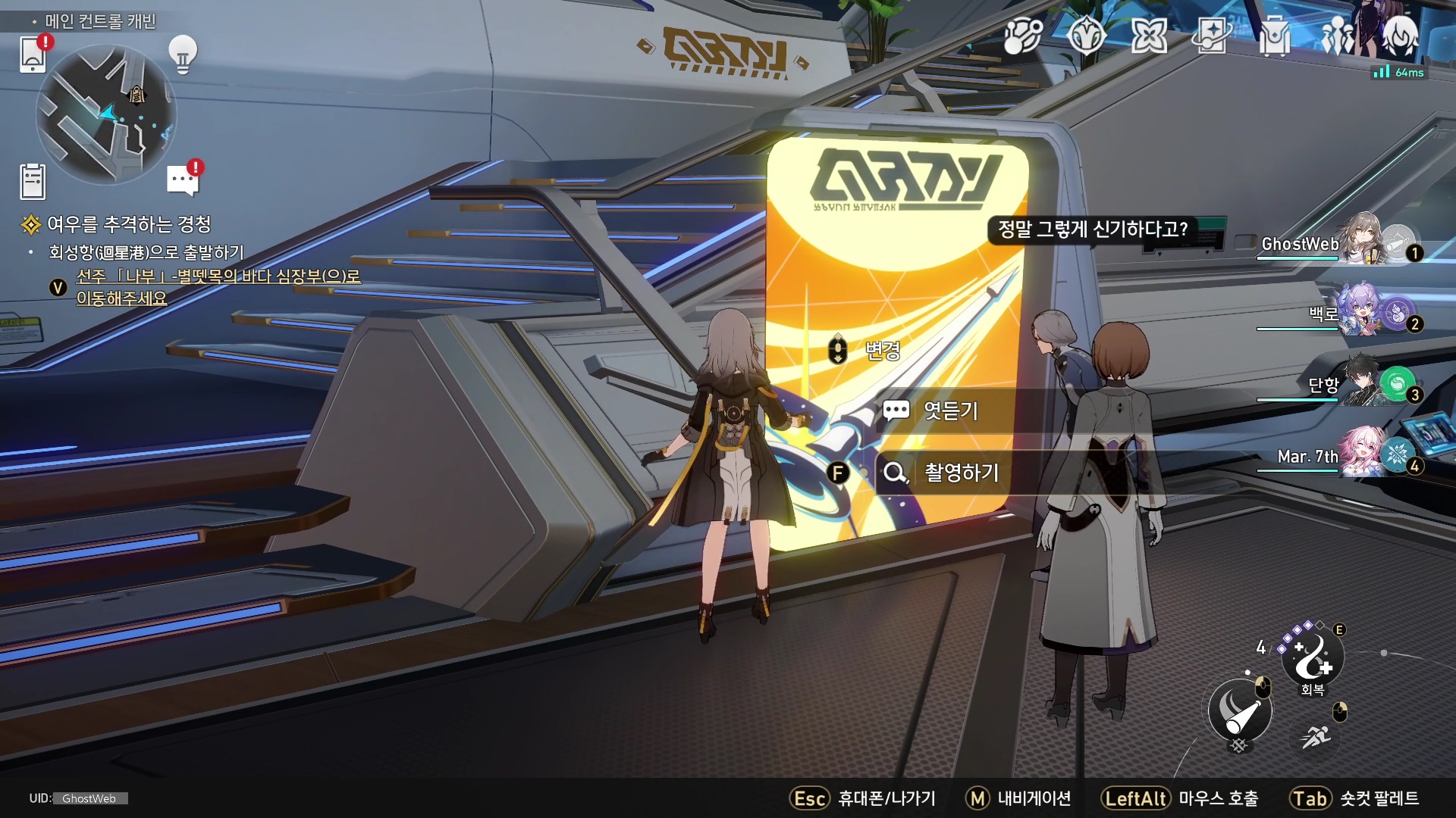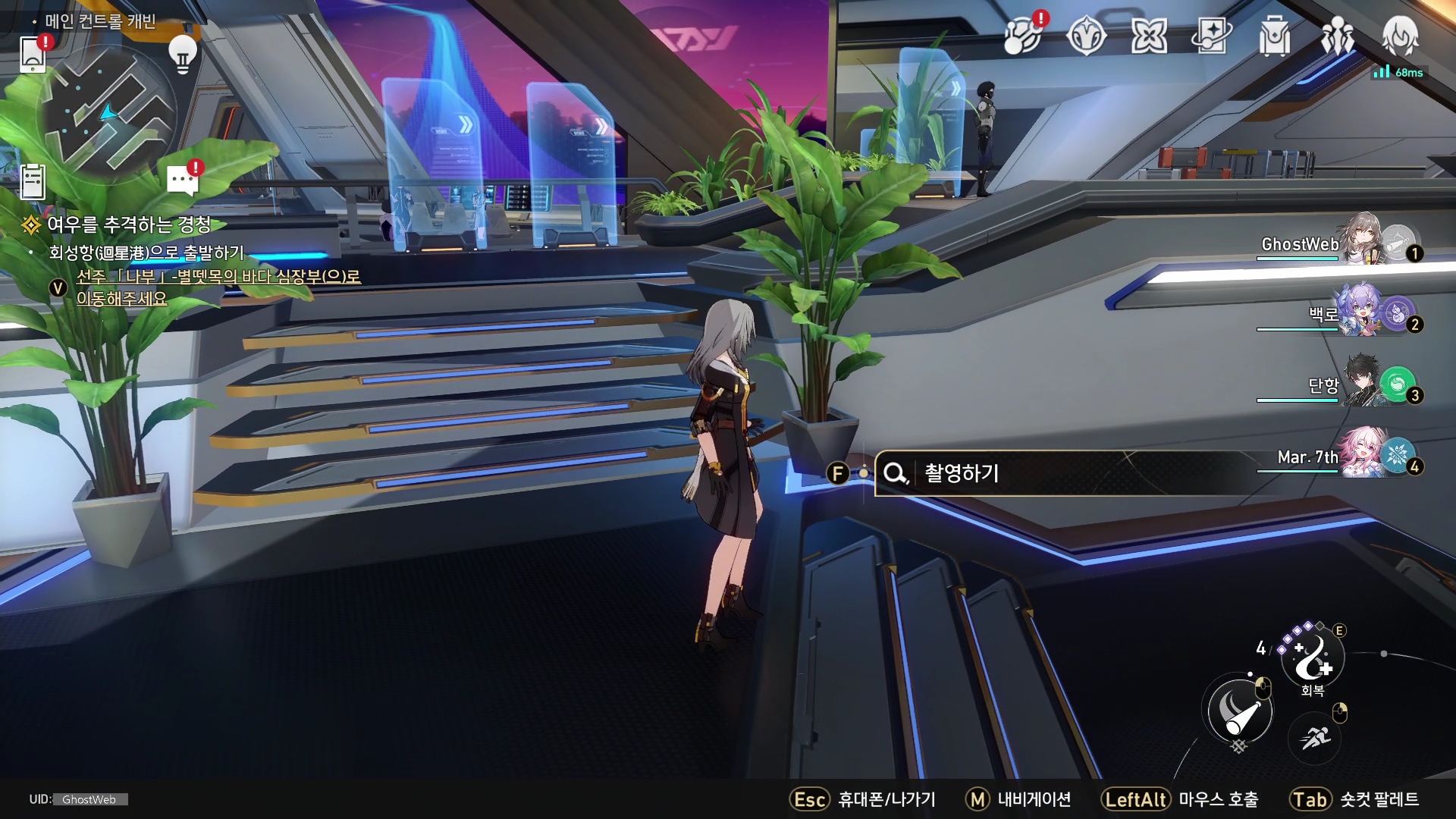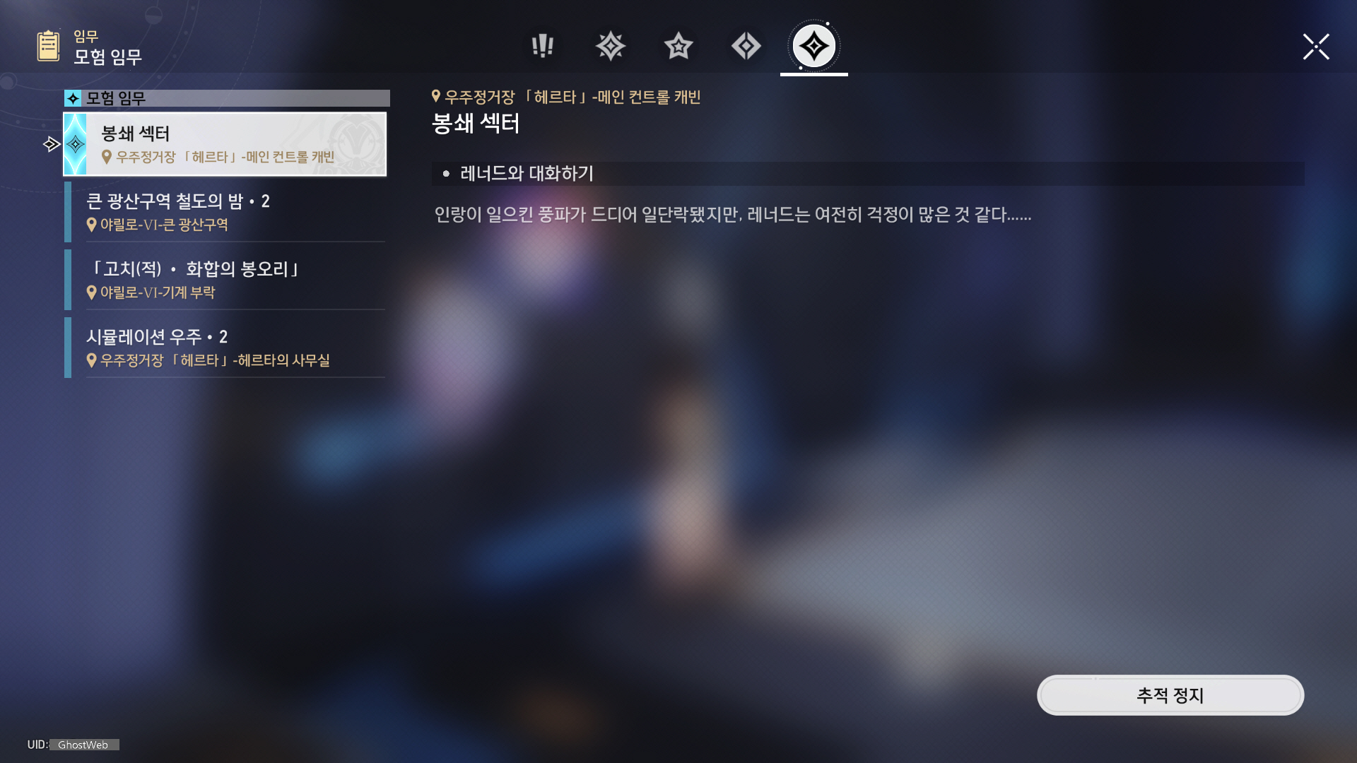 별사냥 게임 스토리는 우주정거장 - 헤르타에 은랑, 카프카가 침입 후 은랑이 남긴 전자 그래피티를 추적하면서 진행돼요. (스토리 진행 시간 : 대략 1시간 정도)