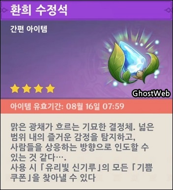 유리빛 신기루를 탐험하다 보면 미니맵의 복주머니 같은 표시가 있는데, 기쁨 쿠폰이 시야에 보이거나 근처에 있을 경우 표시되고, 나중에 [ 환희 수정석 ]을 얻어 장착 후 필드에서 사용하면 주변에 있는 기쁨 쿠폰과 보물 상자의 위치를 맵에 표시 해줘요.