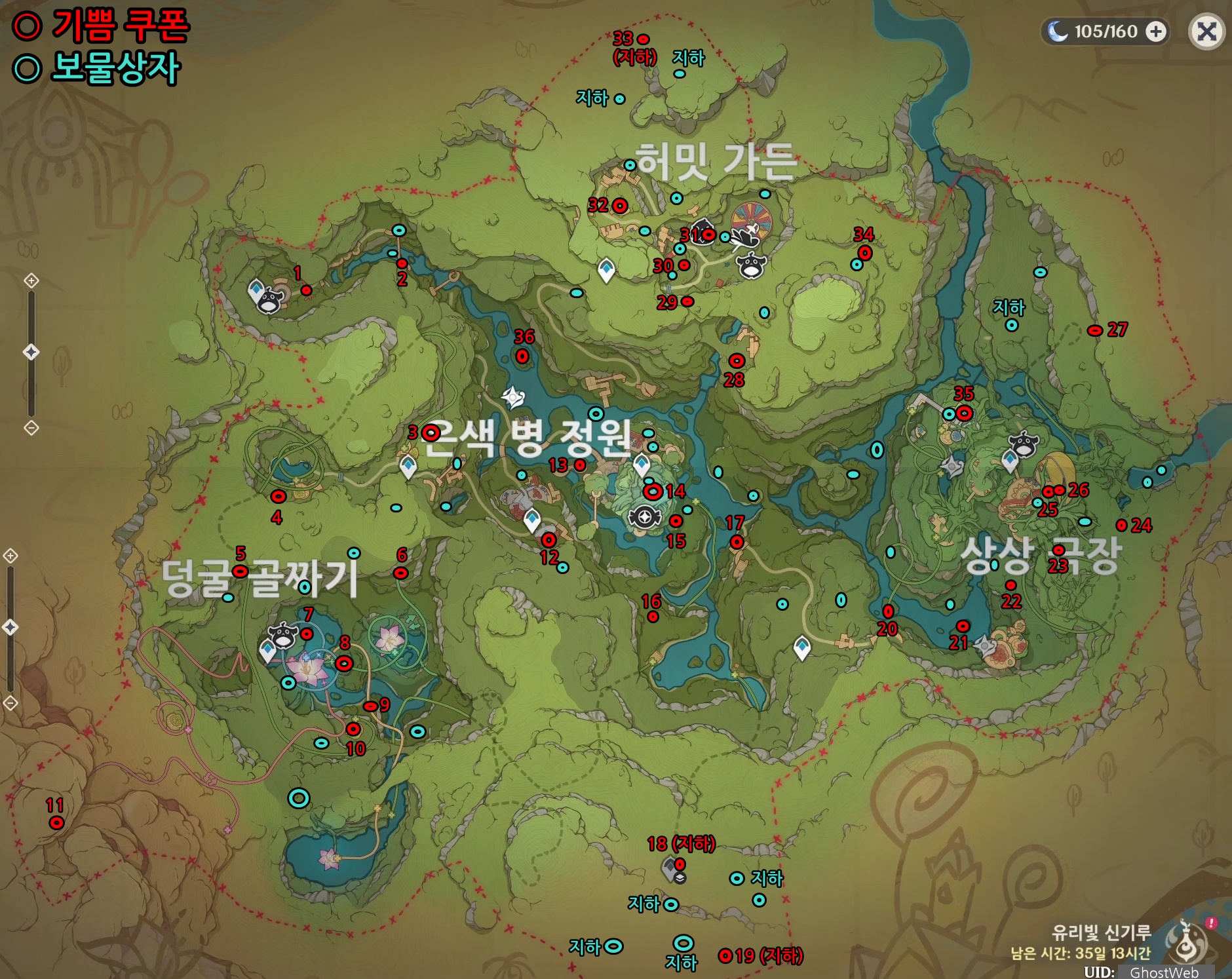※ 탐험하면서 아직 못 찾은 기쁨 쿠폰, 보물 상자가 지도에 추가될 수 있어요.