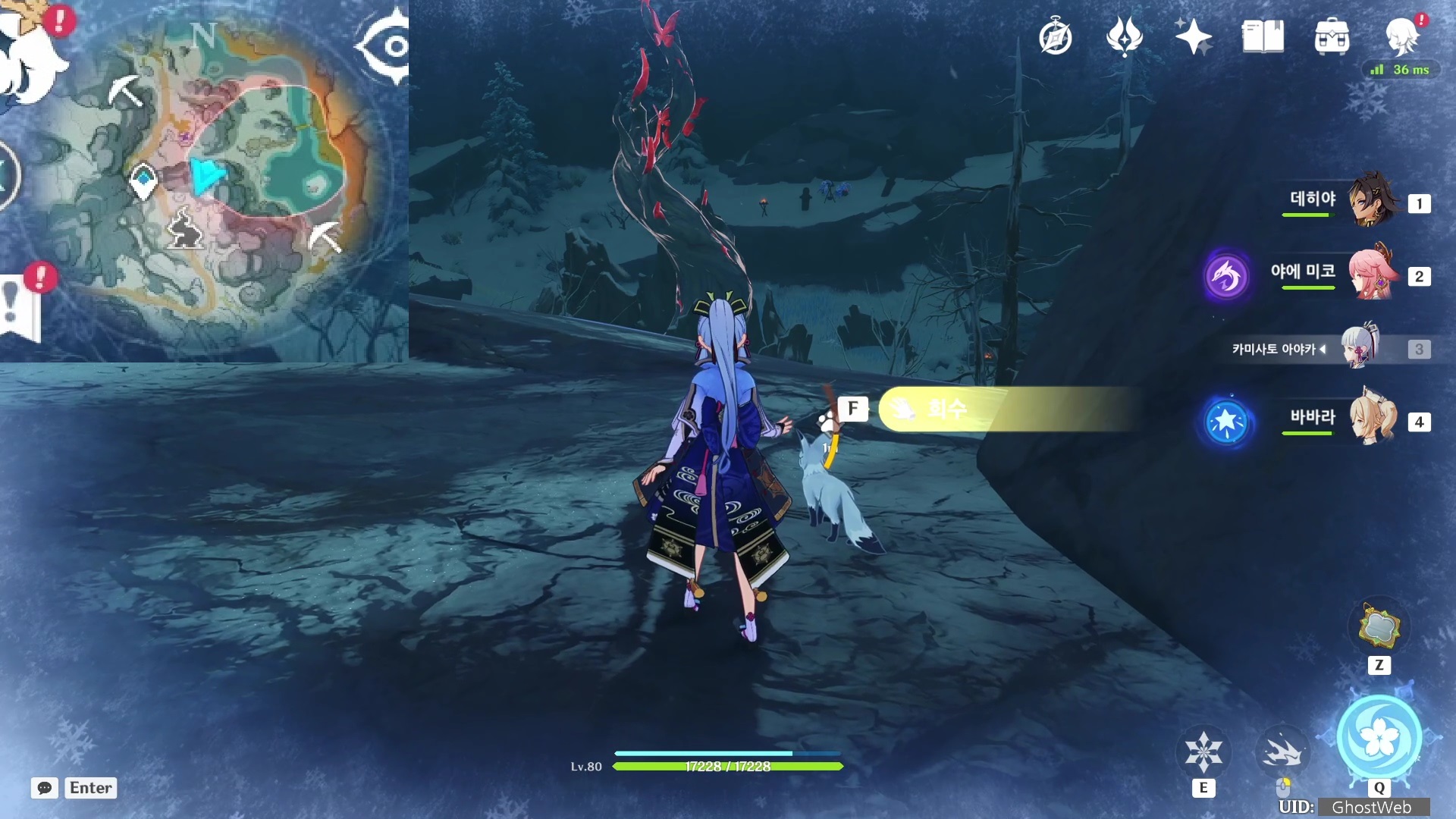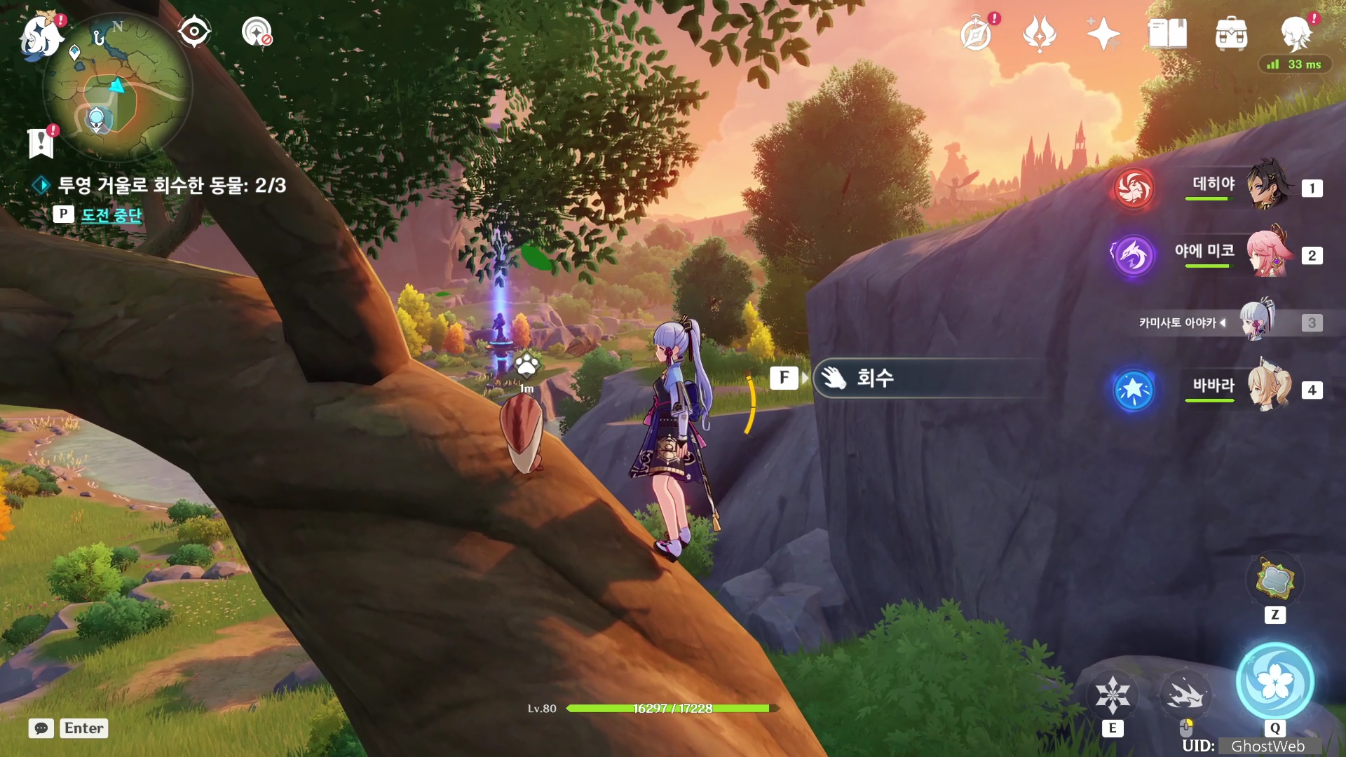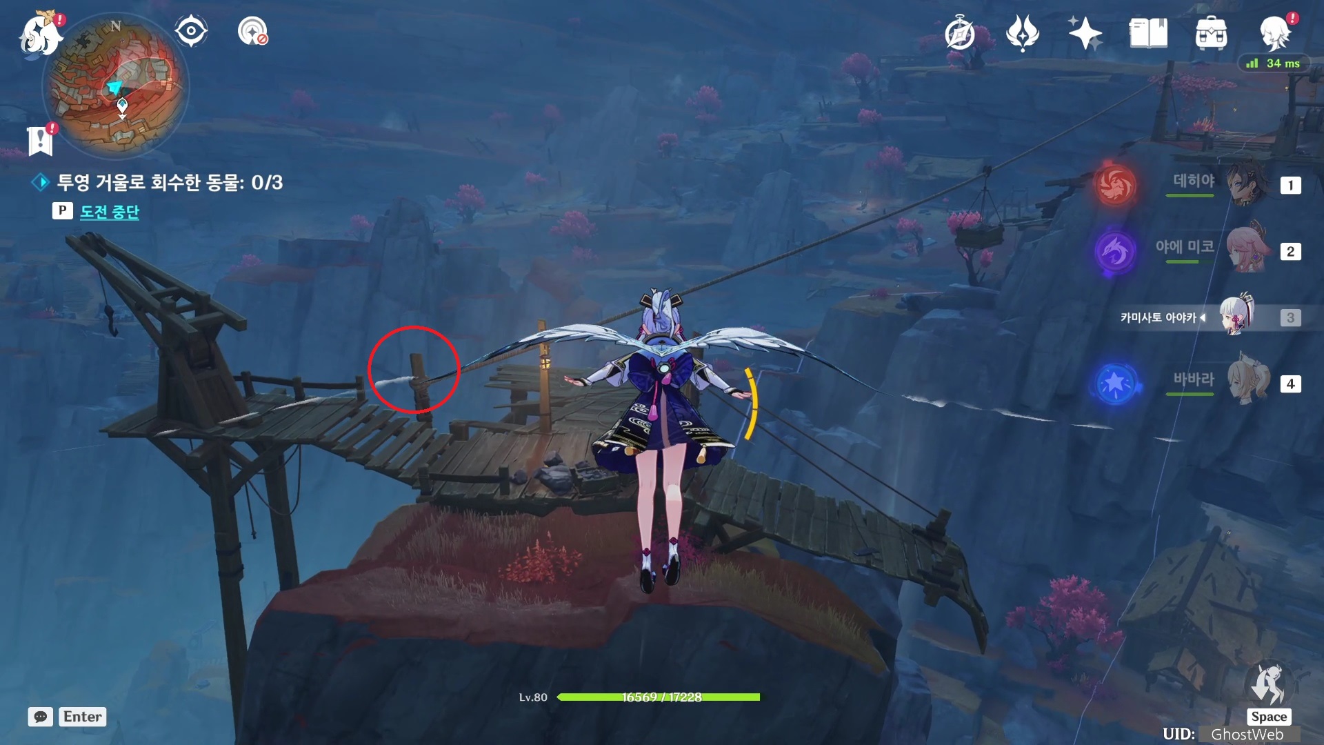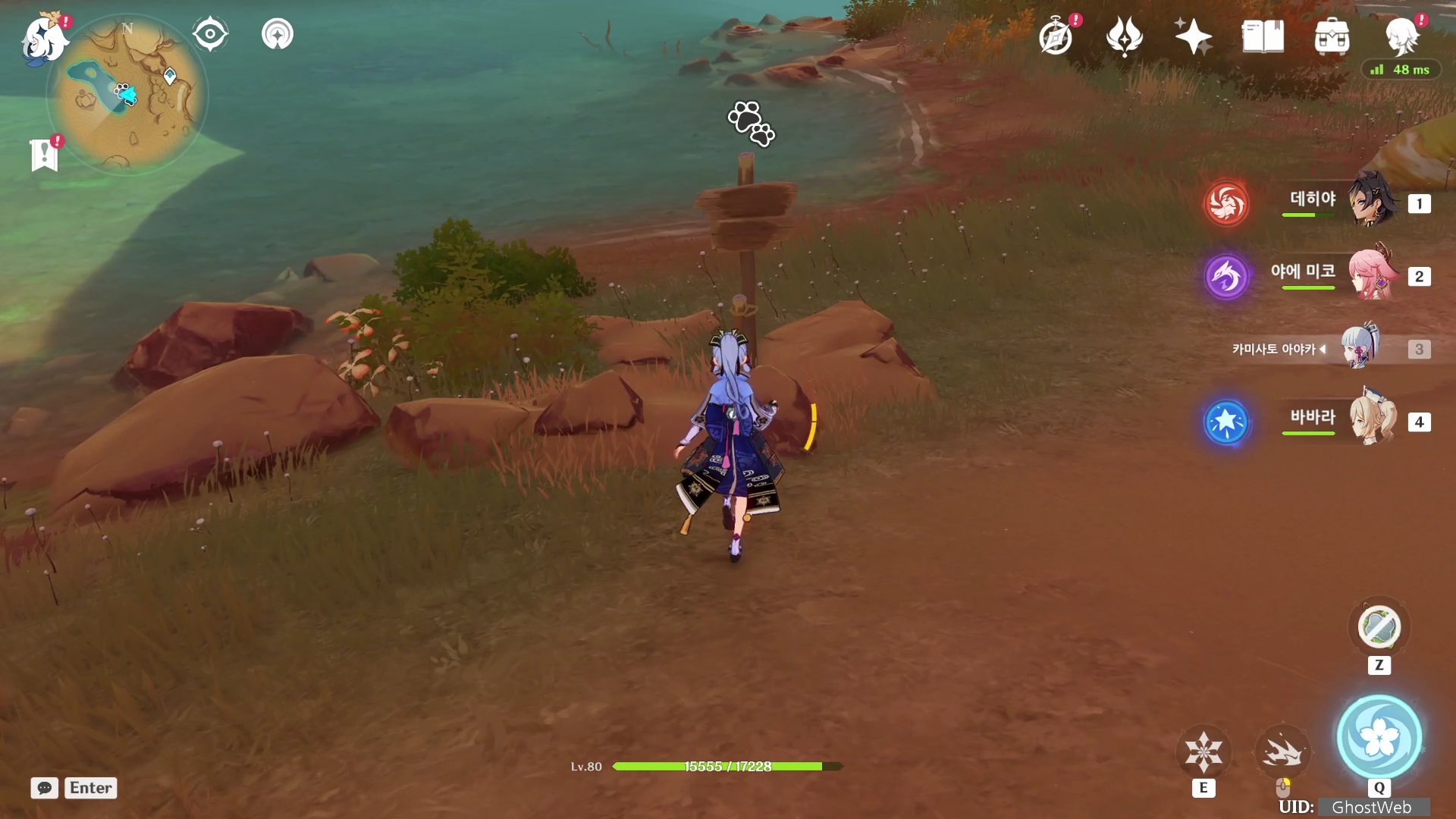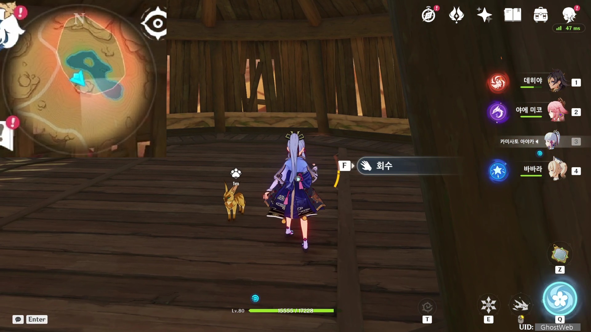 - Z키를 눌러 투영 거울을 사용하면 해당 동물이 보고 있는 풍경을 알 수 있으며, 원소 시야로 주변에 상호 작용 가능한 것이 보이니 잘 안 보인다면 원소 시야를 통해 찾아보세요.