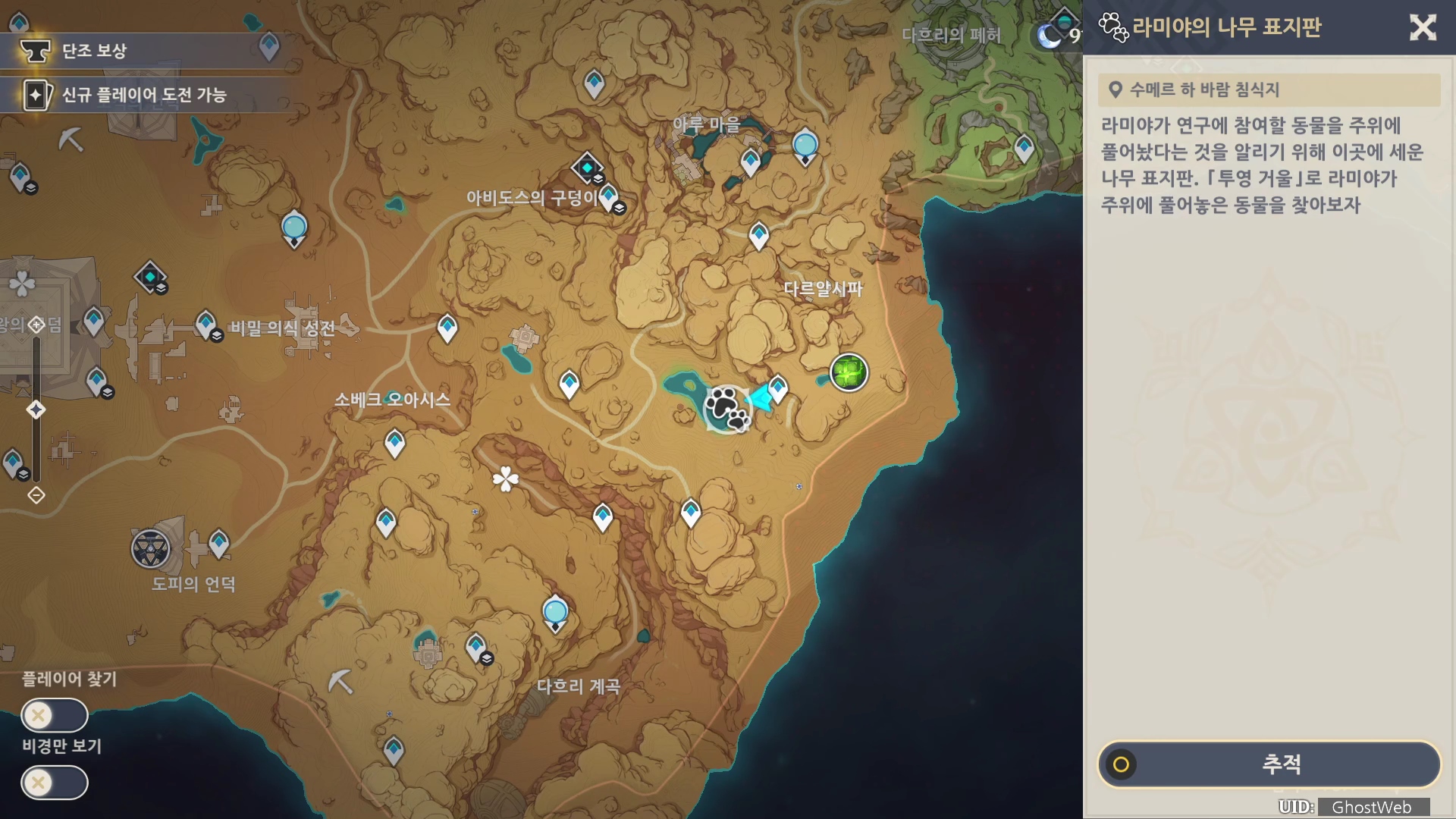 [원신] 수풀 속의 눈 - 동물 위치 정리 (수메르, 아비디야 숲, 거울 속 풍경, 동물 찾기, 모턴, 닐스