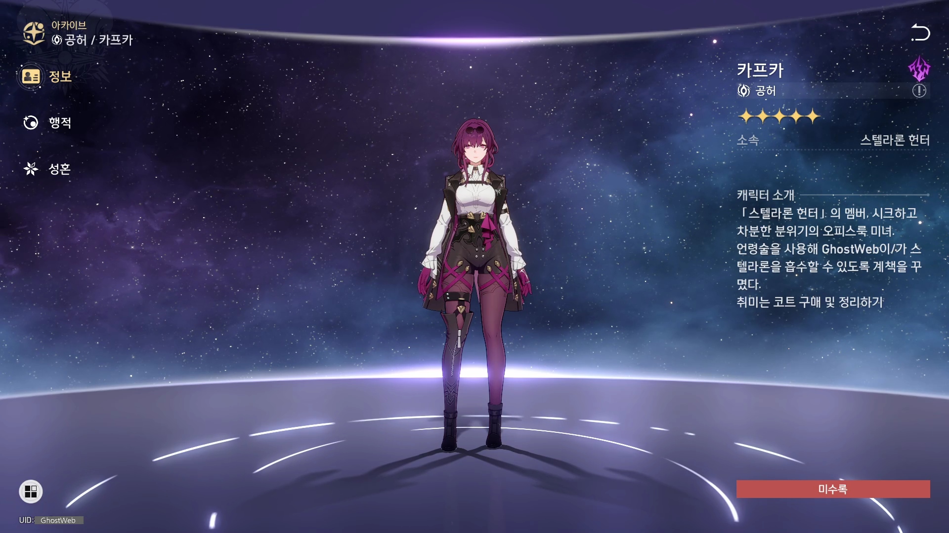 이번에는 붕괴 스타레일 1.2 버전에서 신규로 등장한 카프카에 대해서 정리해보도록 할게요.