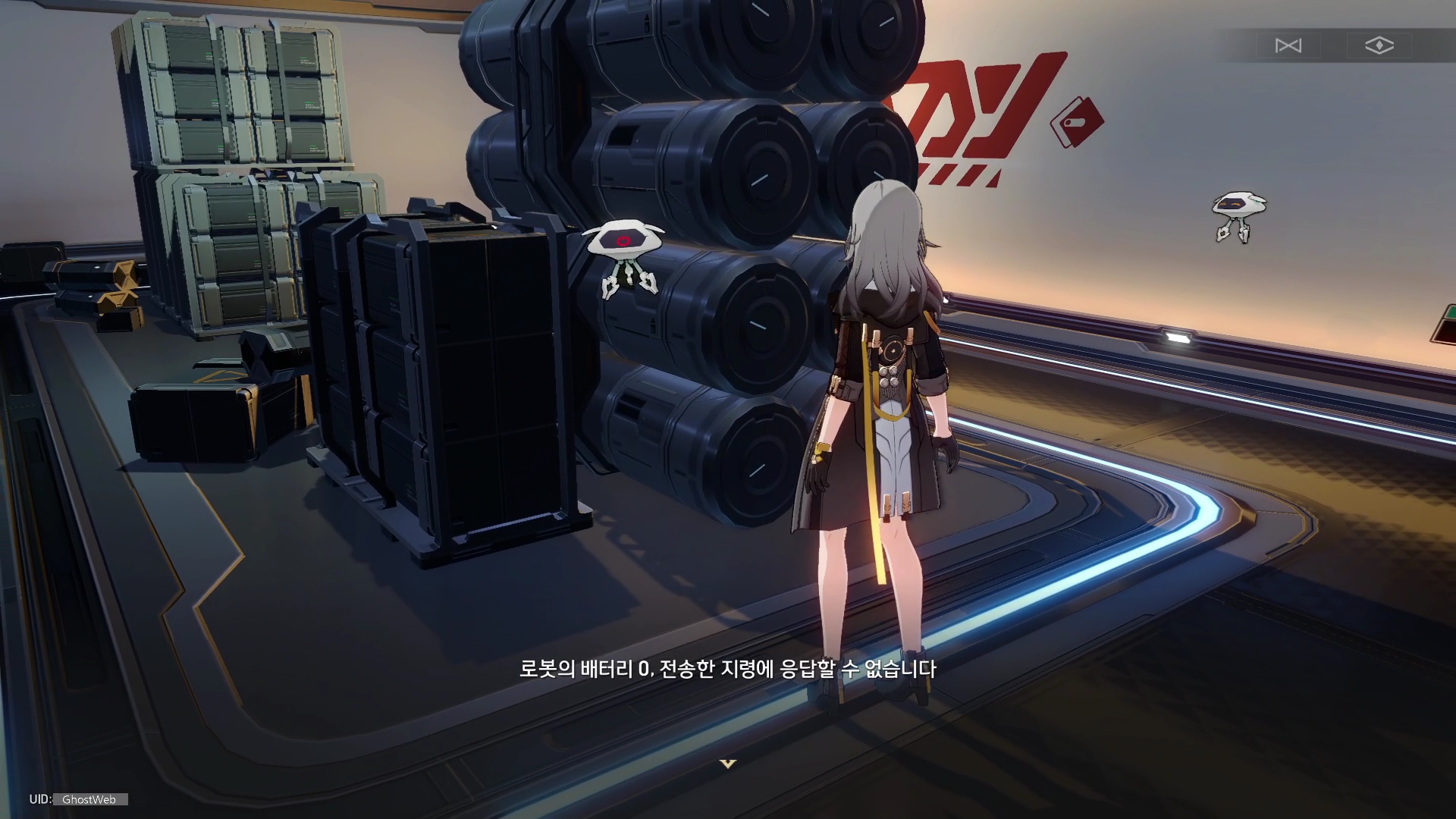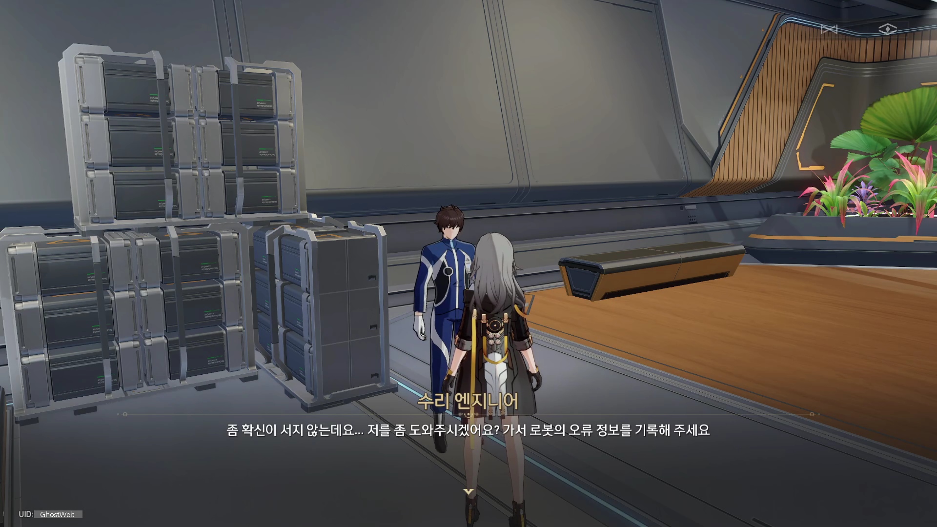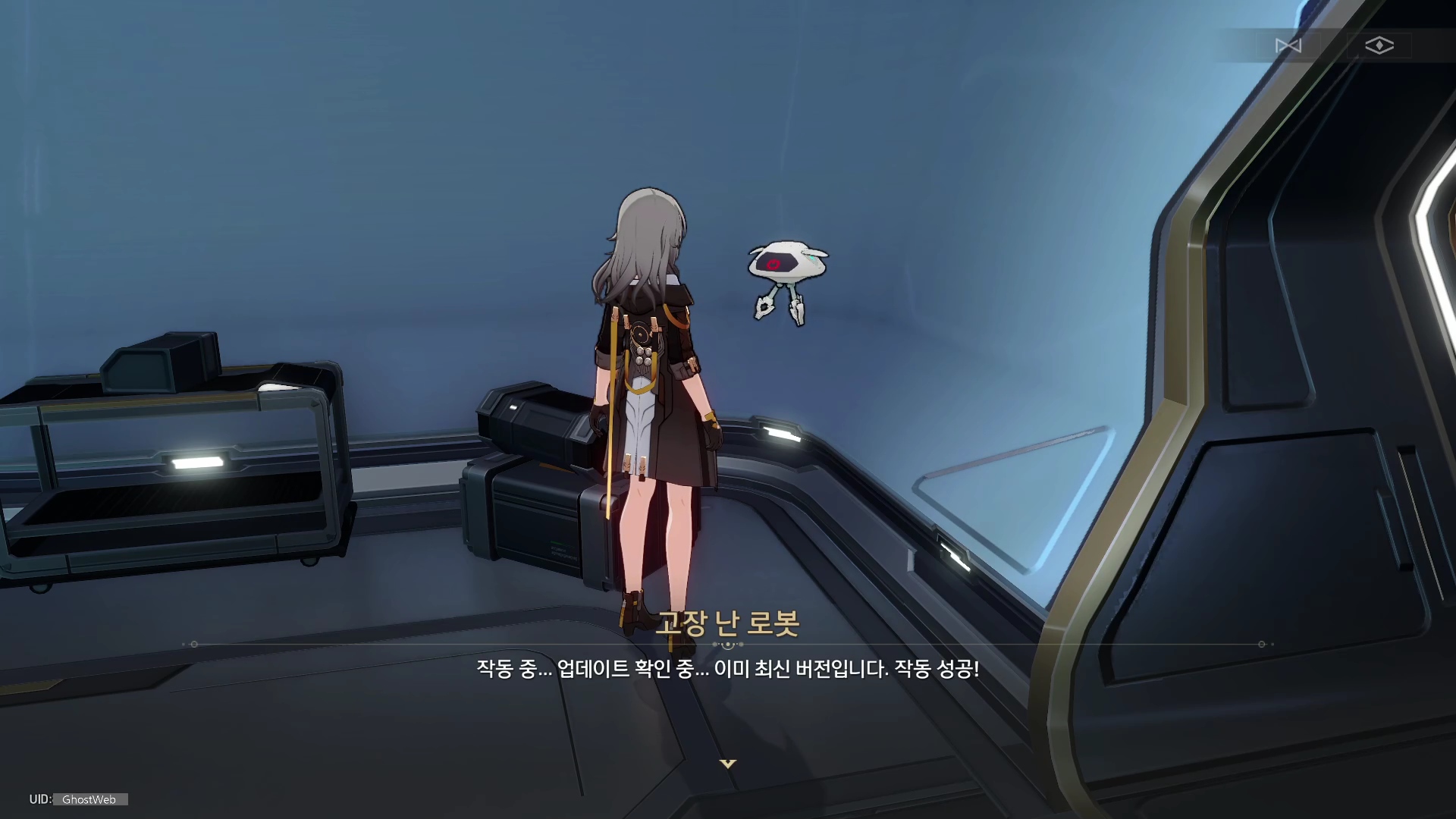 다시 보관 캐빈 2층 한쪽에 있는 창고에 있는 로봇에게 상호작용하면 오류 코드를 얻을 수 있는데, 소형 로봇 눈 부분에 [....]으로 표시된 로봇에게 말을 걸면 돼요.