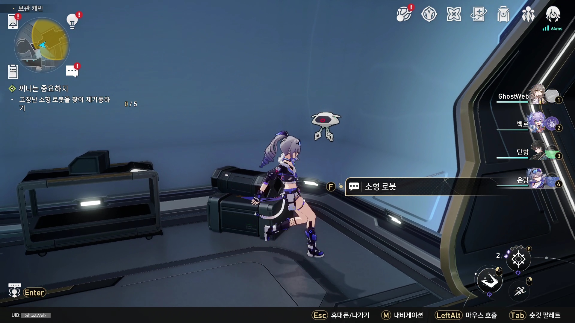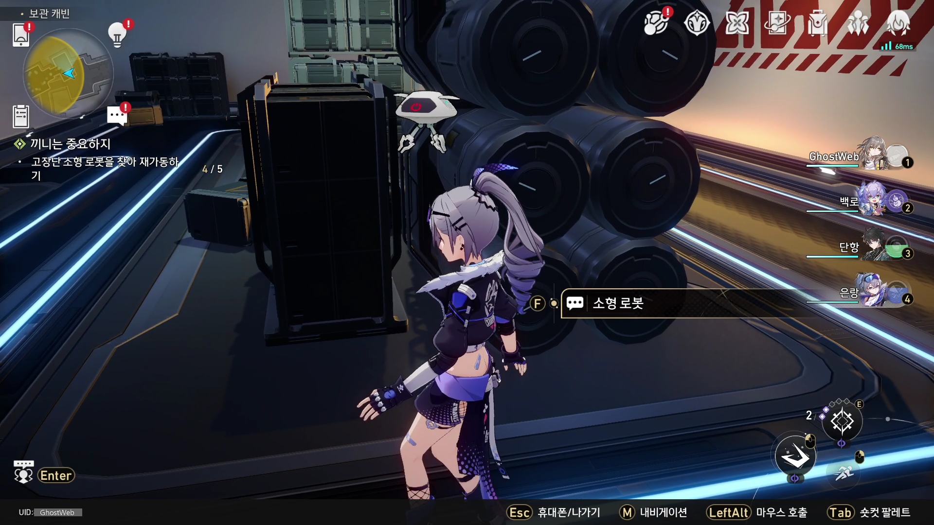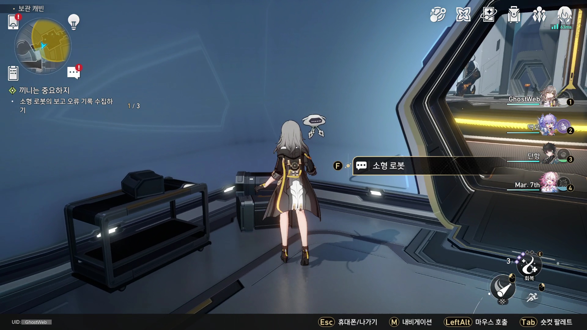 다시 보관 캐빈 2층 한쪽에 있는 창고에 있는 로봇에게 상호작용하면 오류 코드를 얻을 수 있는데, 소형 로봇 눈 부분에 [....]으로 표시된 로봇에게 말을 걸면 돼요.