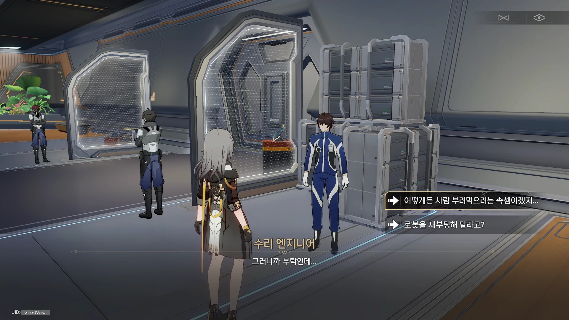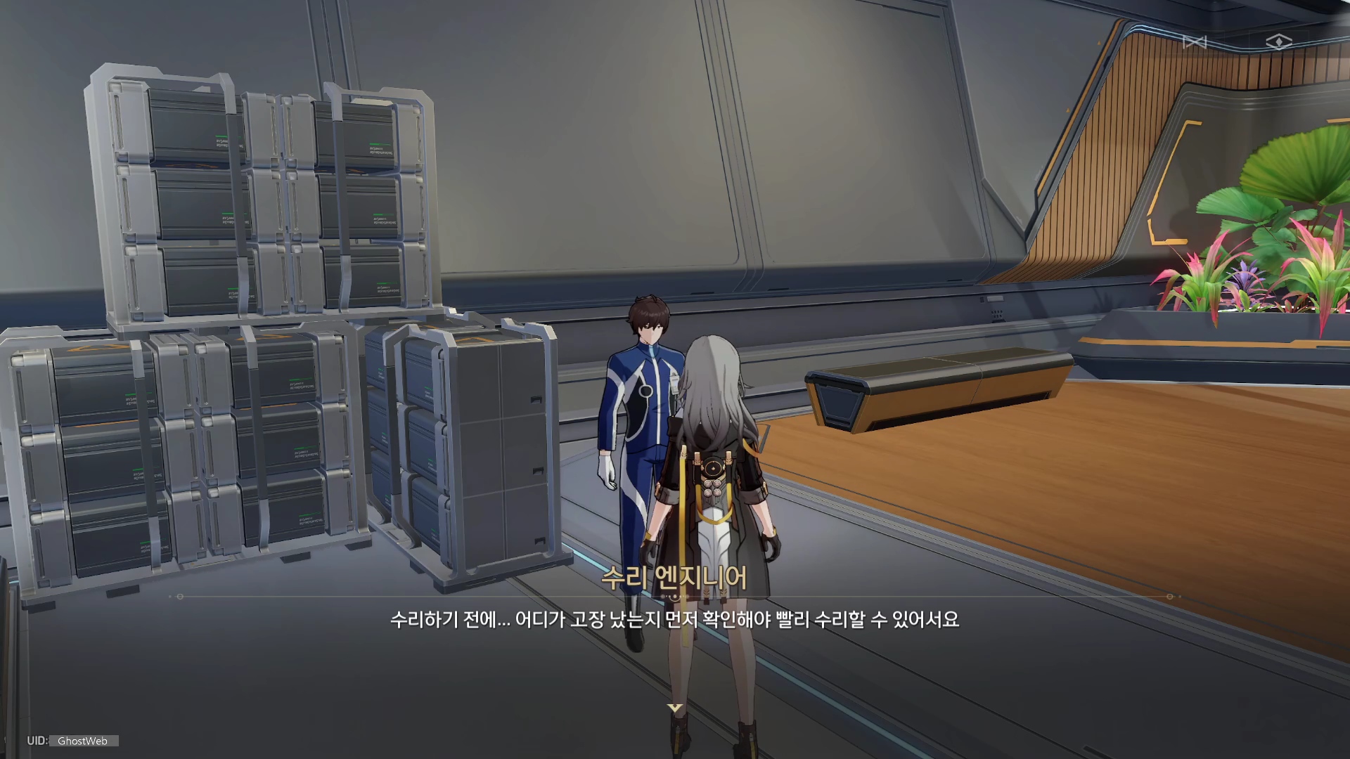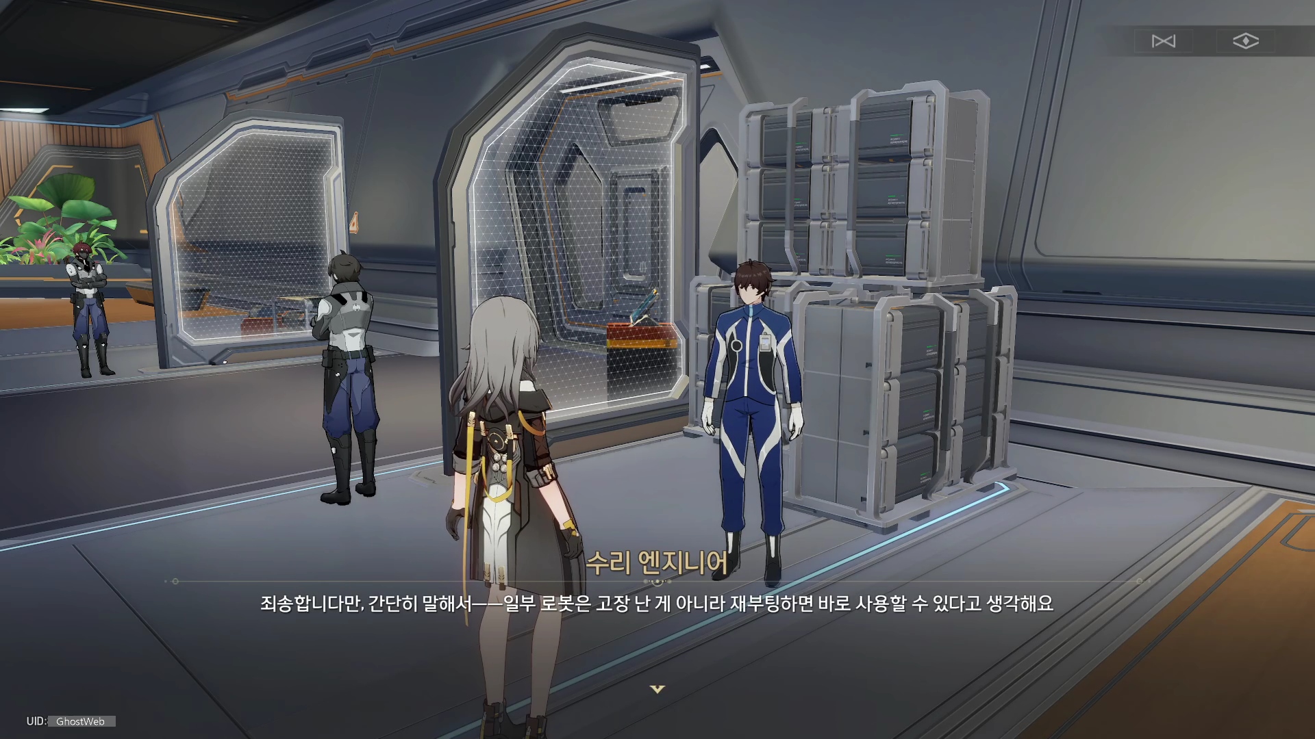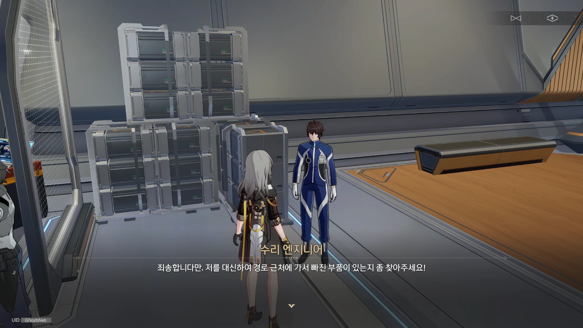 베이스 캐빈에 있는 수리 엔지니어에게 말을 걸면 다시 보관 캐빈가서 고장난 소형 로봇을 가동해 달라고 부탁해요.