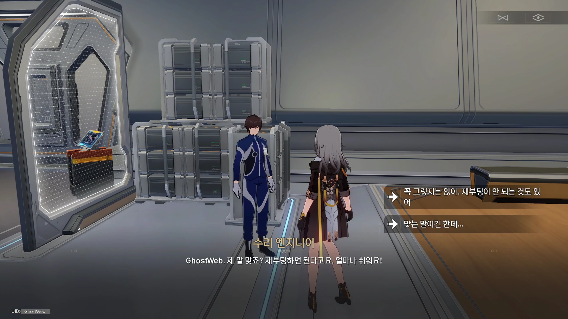 오류 기록 3개를 수집하고 다시 베이스 캐빈으로 돌아가 수리 엔지니어에게 말을 걸면 오류 코드 번호에 대한 오류 내용을 물어 보는데, 선택지에서 선택을 잘못하여도 다시 선택할 수 있어요.