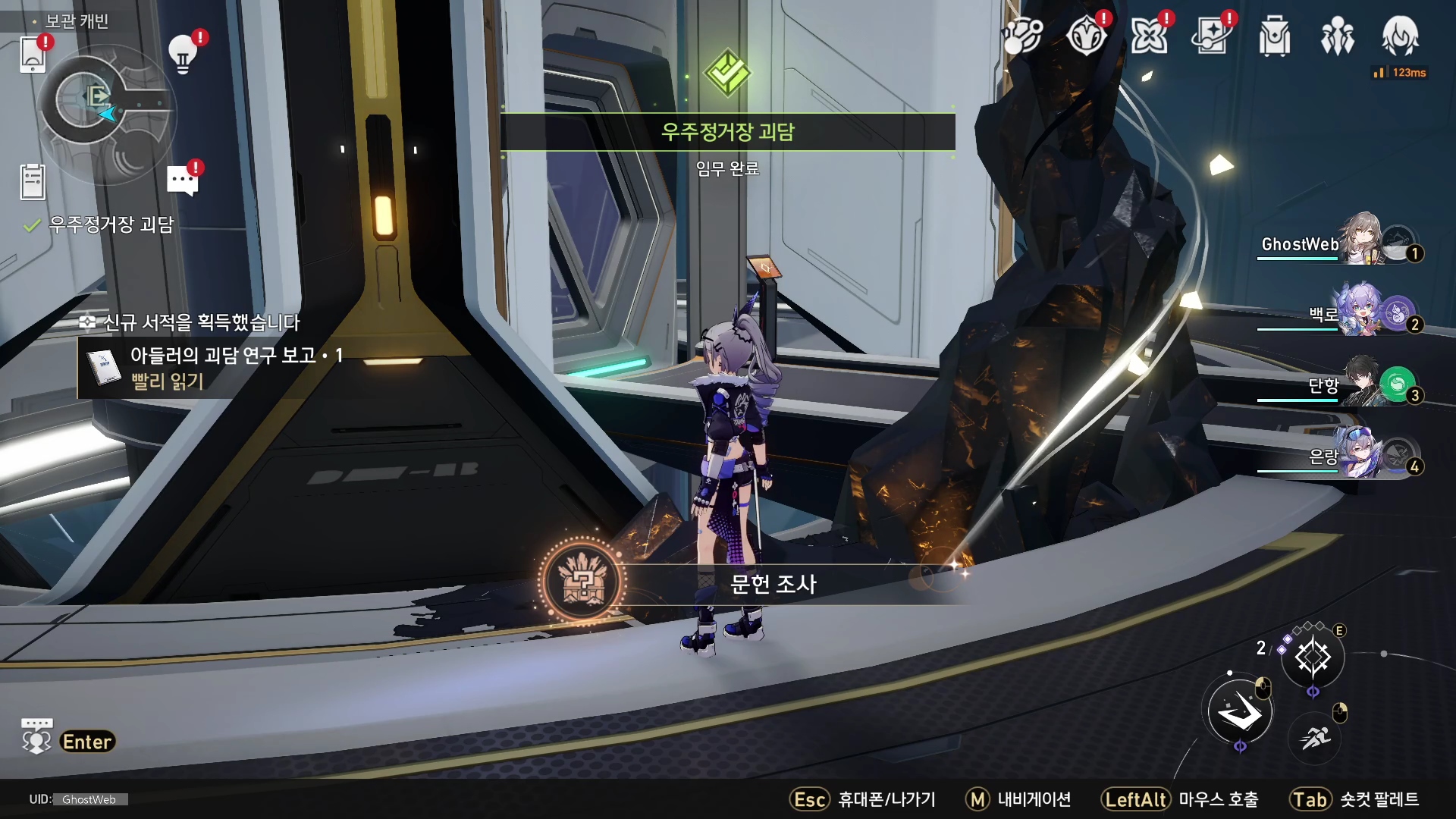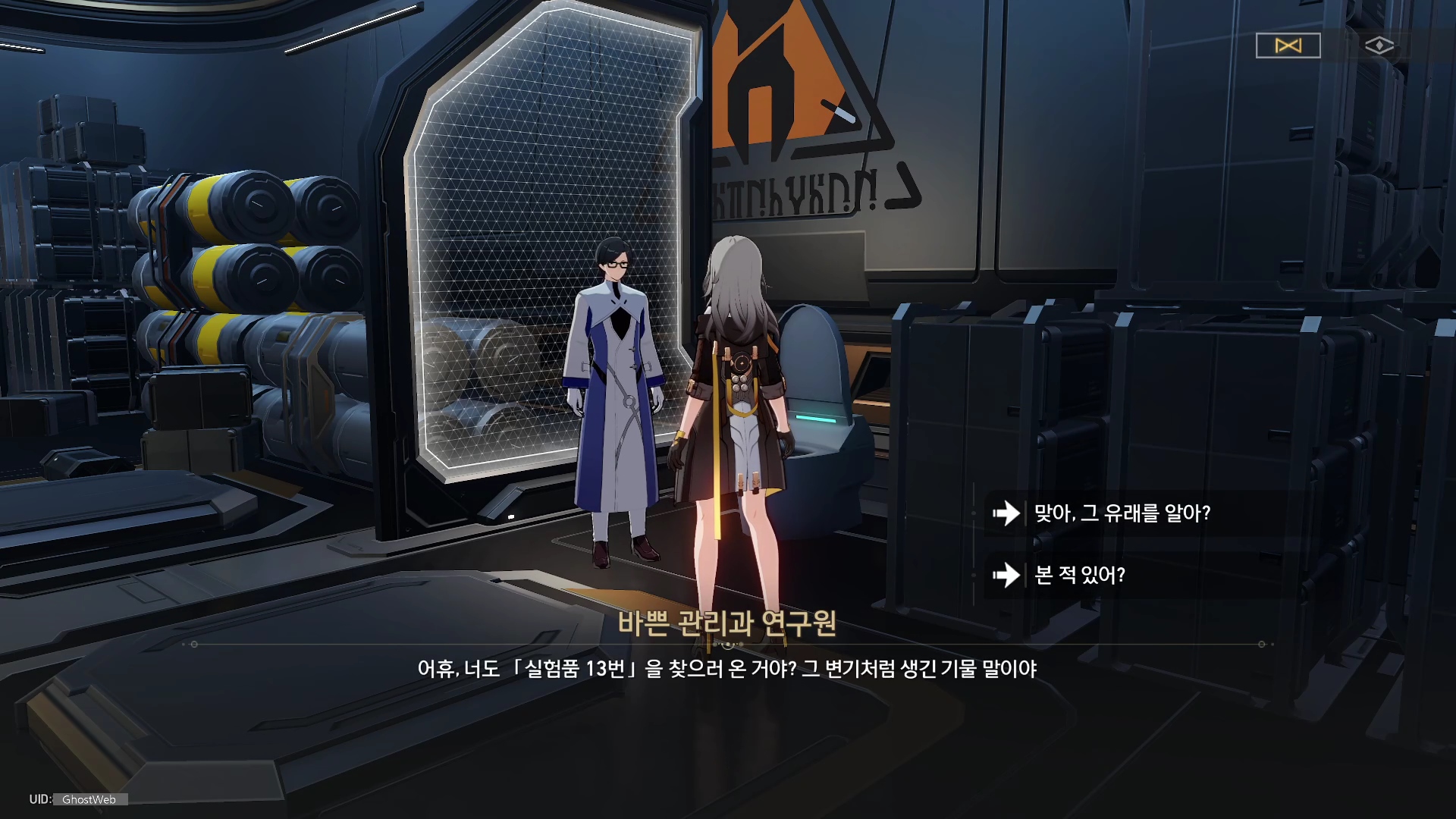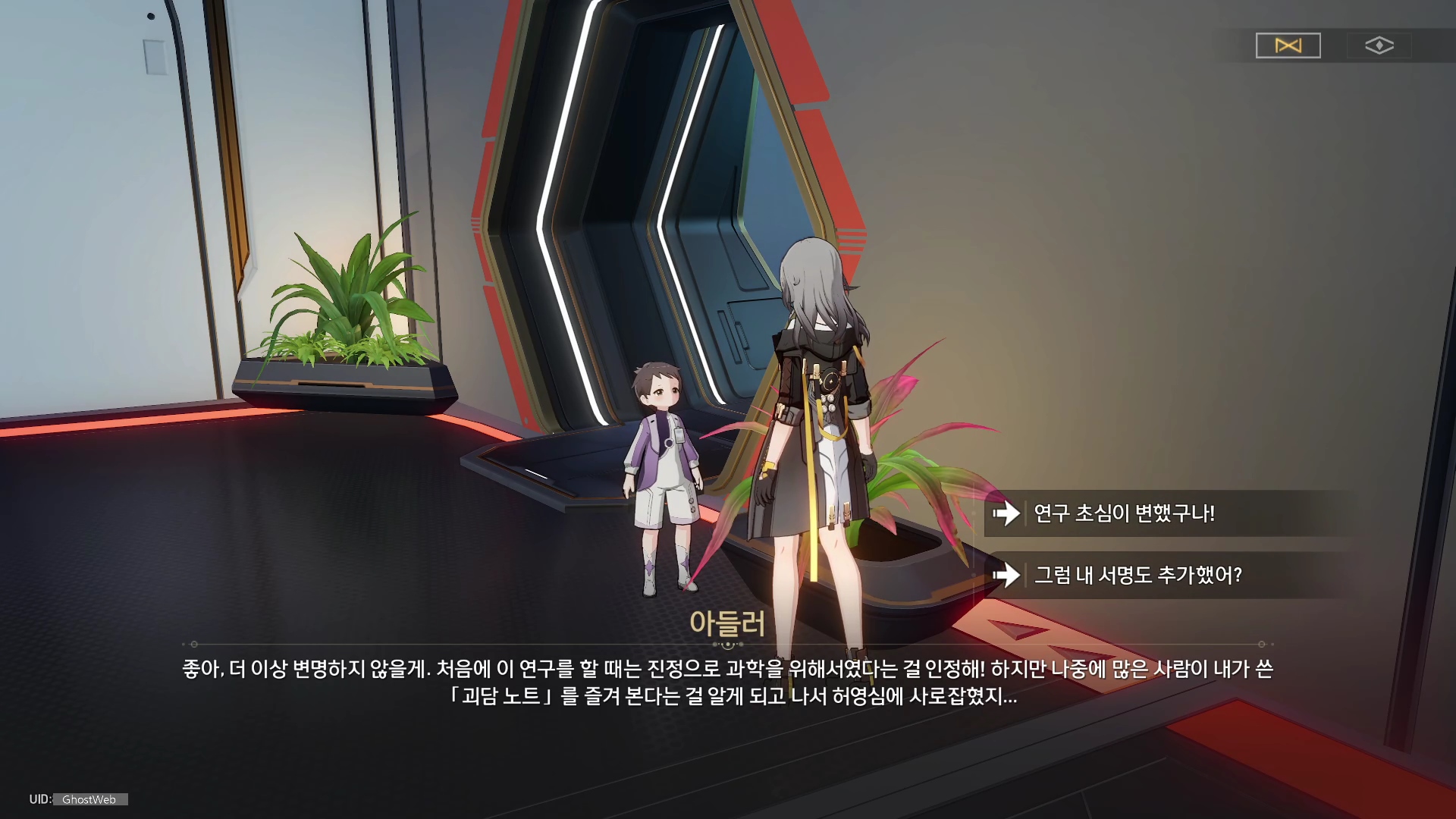 졸린 연구원과 이야기를 통해 연구실 방범문에서 엉엉 거리며 누군가 통곡하는 소리를 들었다며 방범문 좌표를 개척자에게 주고, 개척자는 지도에 표시된 곳에서 [ 외톨이 울보 유령 ]을 발견하여 이를 아들러에게 알려주면 해당 임무가 완료되며, 임무 보상으로 [ 아들러의 괴담 연구 보고 1 ]과 [ 문헌 조사 ] 업적을 달성할 수 있어요.