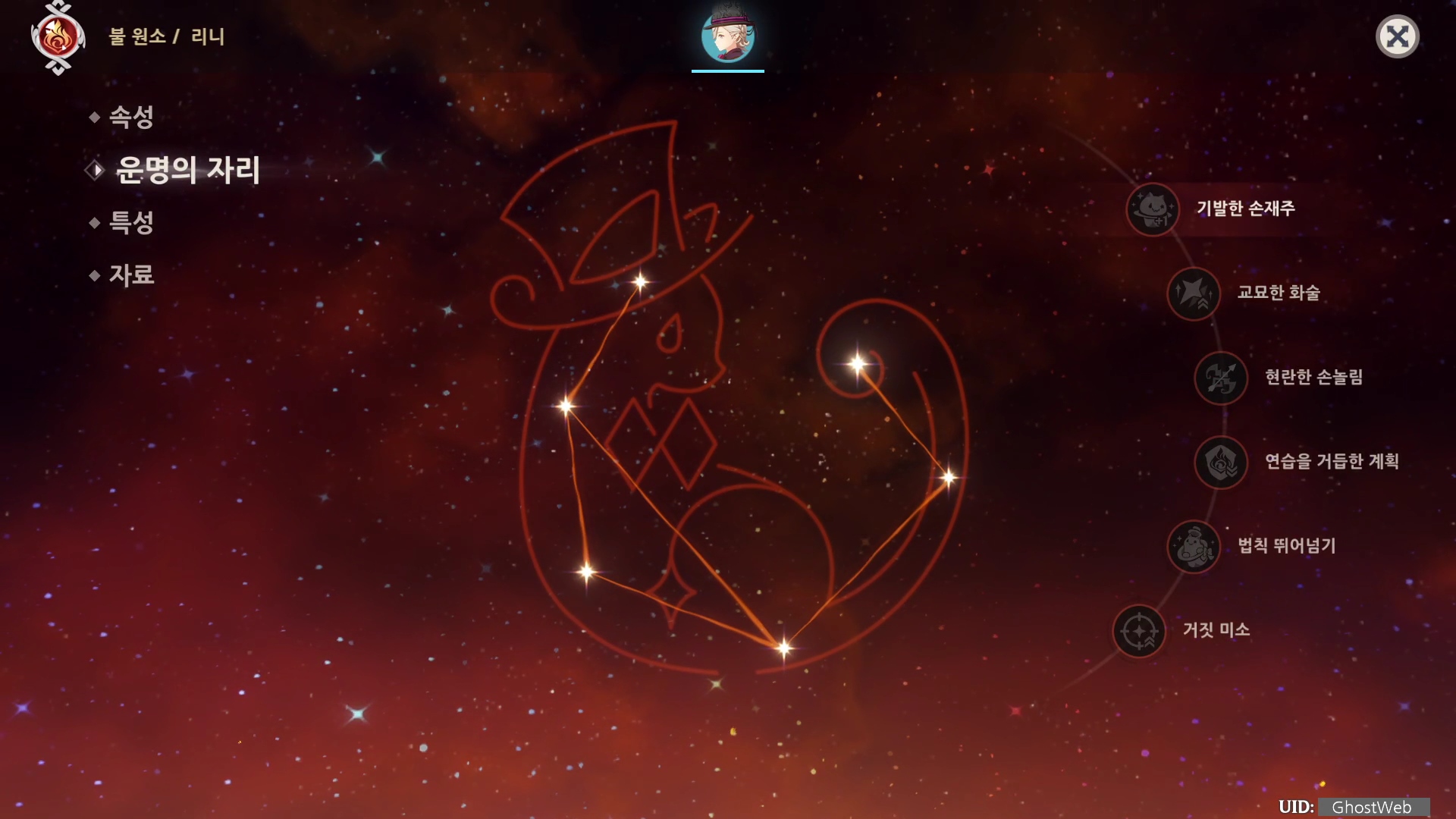 - 상술한 방식으로 리니가 불 원소의 영향을 받는 적에게 주는 피해는 최대 100% 증가한다.