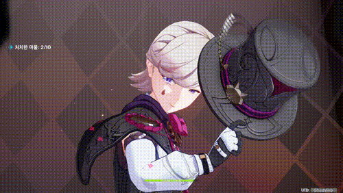 - 또한 트릭 화살은 명중 시, 웃는 고양이 모자를 2개 소환하고 추가로 [ 잔여 트릭 ]을 1스택 누적한다.