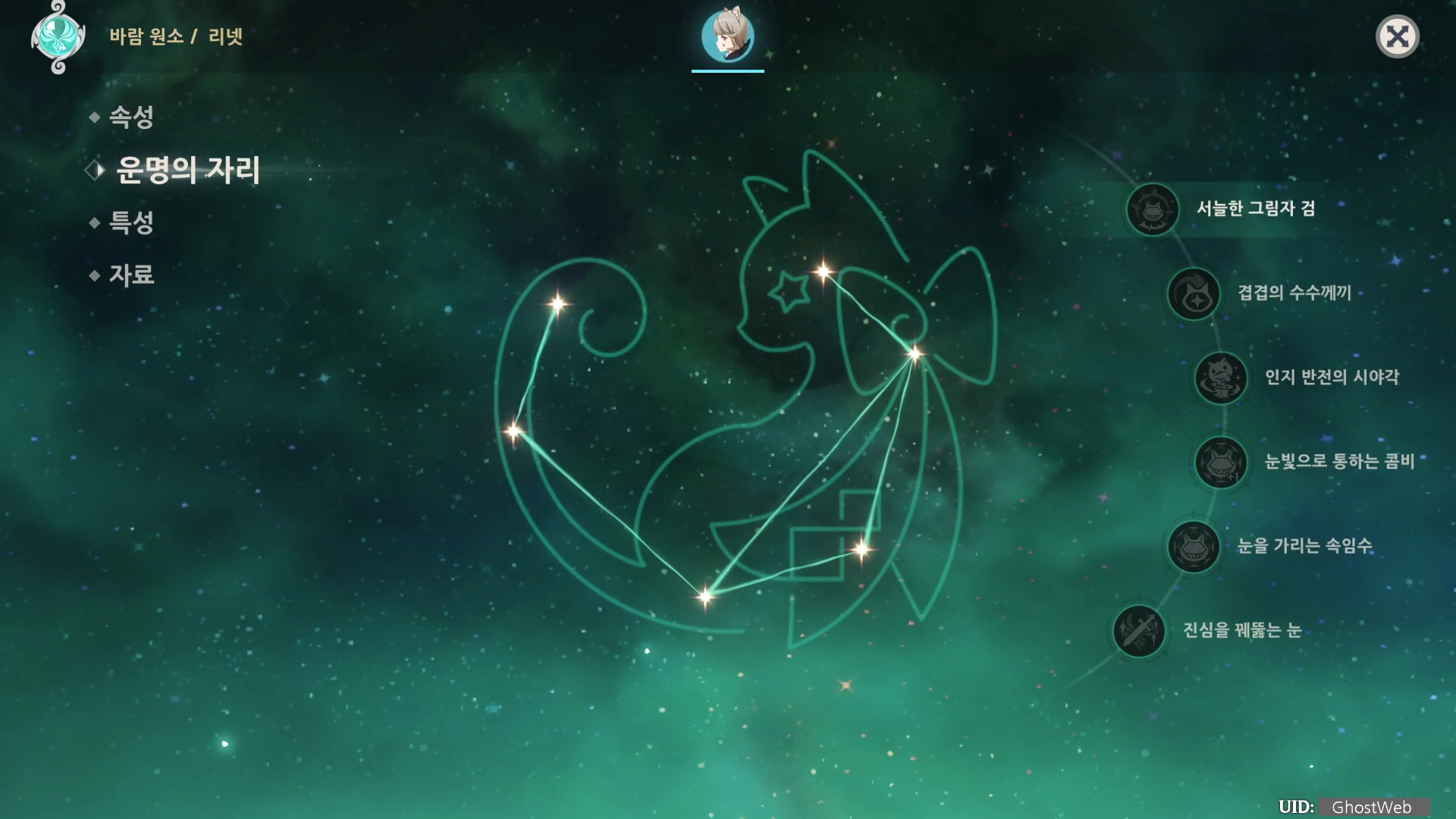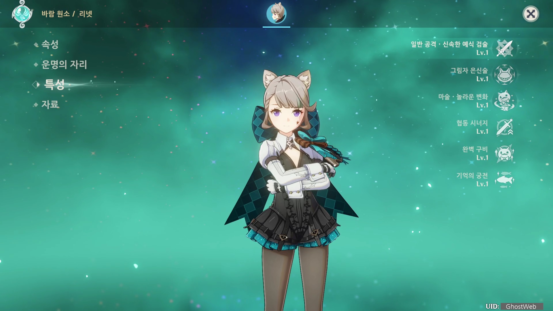 - 리넷이 그림자 은신술의 그림자 찌르기 발동 시 바람 원소 부여 효과를 획득하고, 바람 원소 피해 보너스가 20% 증가한다.