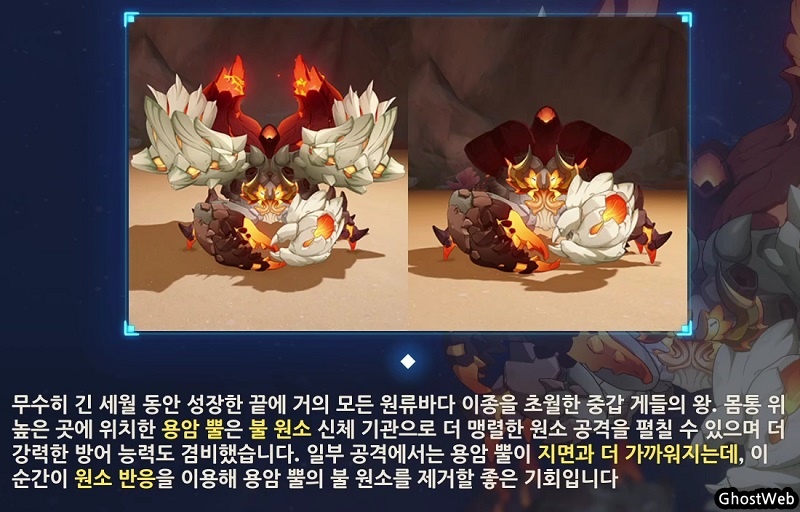 이번에는 폰타인의 몬스터인 [ 용암철갑 제왕 ]에 대해서 정리해도록 할게요.