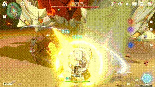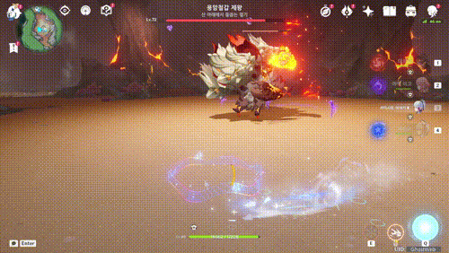 5. 용암철갑 제왕 주변 일정 반경에 전체에 불 원소 공격하기 (원 반경 전체)