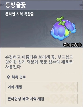 이번에는 폰타인 지역 특산물인 [ 등방울꽃 ]을 파밍할 수 있는 위치를 정리해보도록 할게요.