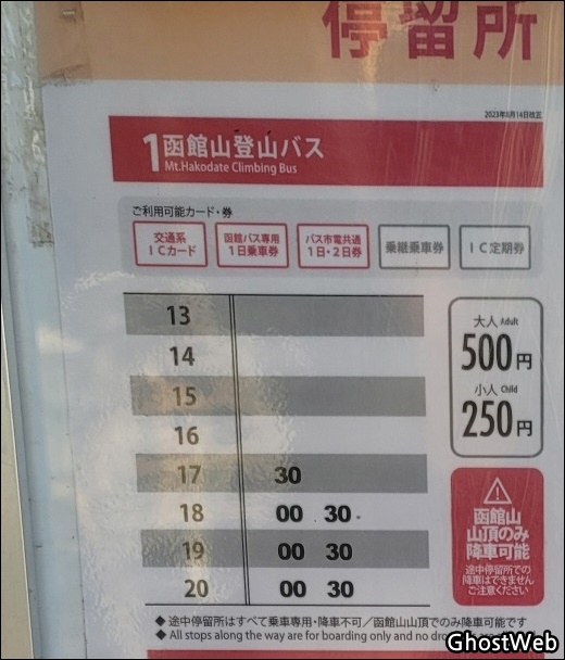 ※ 하코다테 역으로 내려가는 버스는 18~20시에는 10, 40분에 출발하고 21 시에는 10분 차만 존재