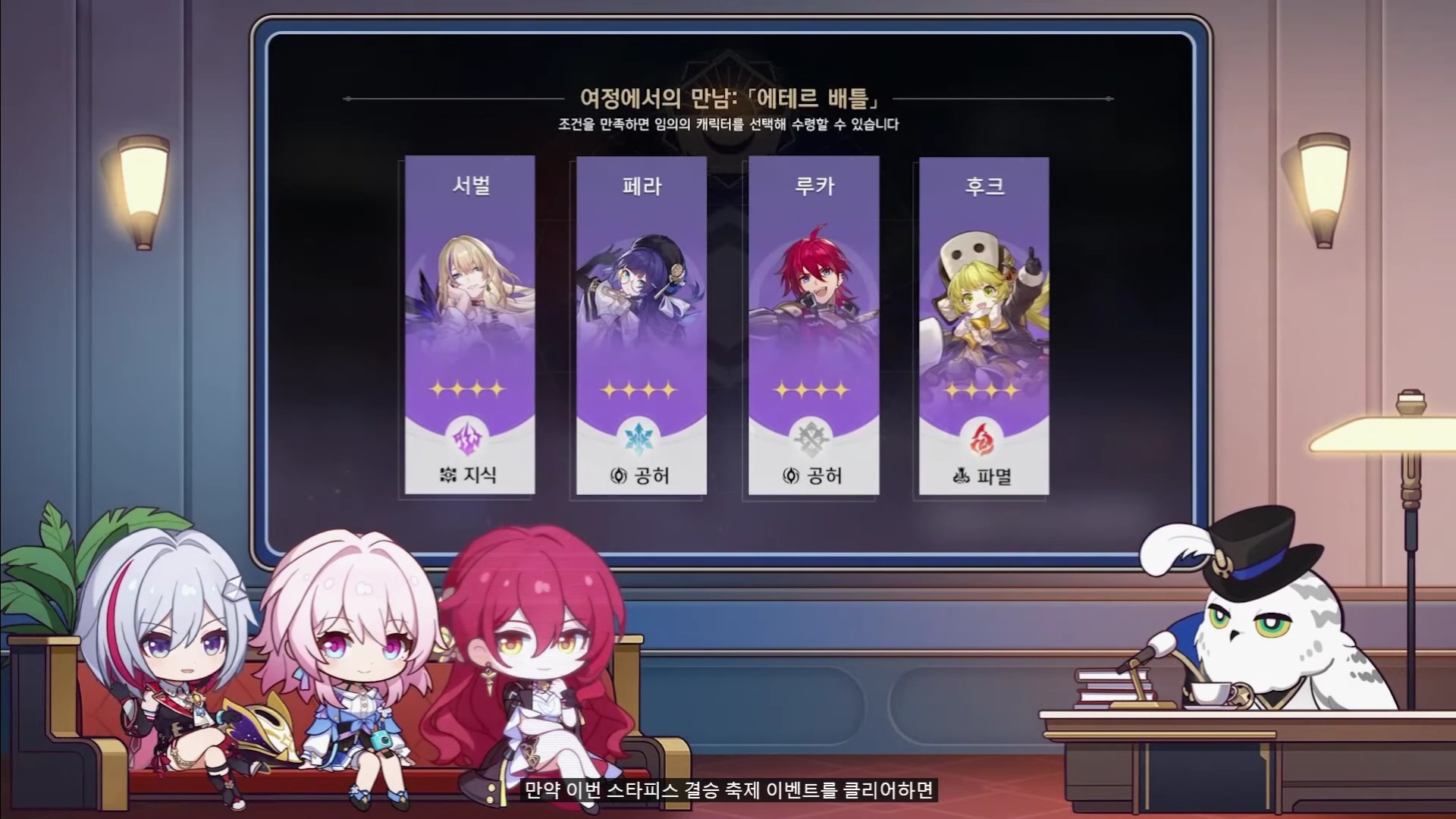 - 보상으로 4성 캐릭터 수령 가능 (서벌, 페라, 루카, 후크 중 1회)