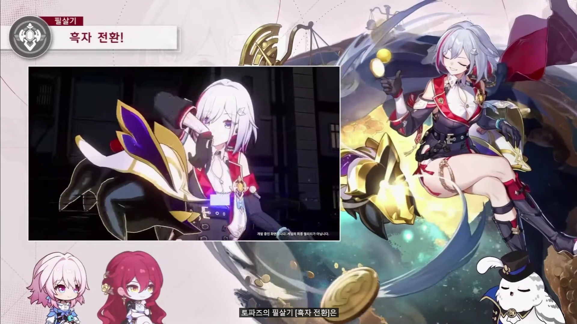 - 부채 증명의 표식 목표를 바꾸고 복순이는 즉시 공격을 1회 발동하며 토파즈의 일정 공격력만틈의 화염 속성 피해를 가함. (추가 공격으로 간주)