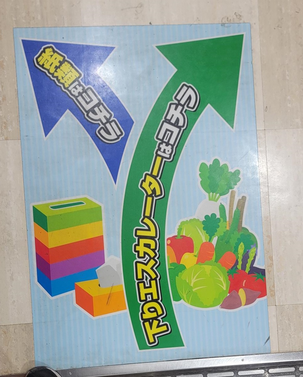 지하로 내려가는 에스컬레이터는 중앙 에스컬레이터 옆에 위치하고 있어 땅 바닥에 붙어 있는 안내 방향을 잘 보고 다니시는 것을 추천드려요.