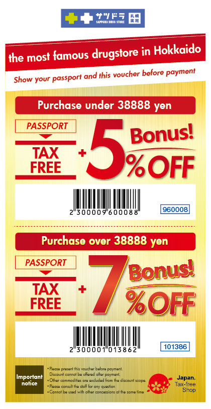 The list of the duty free shop in Sapporo Drug Store