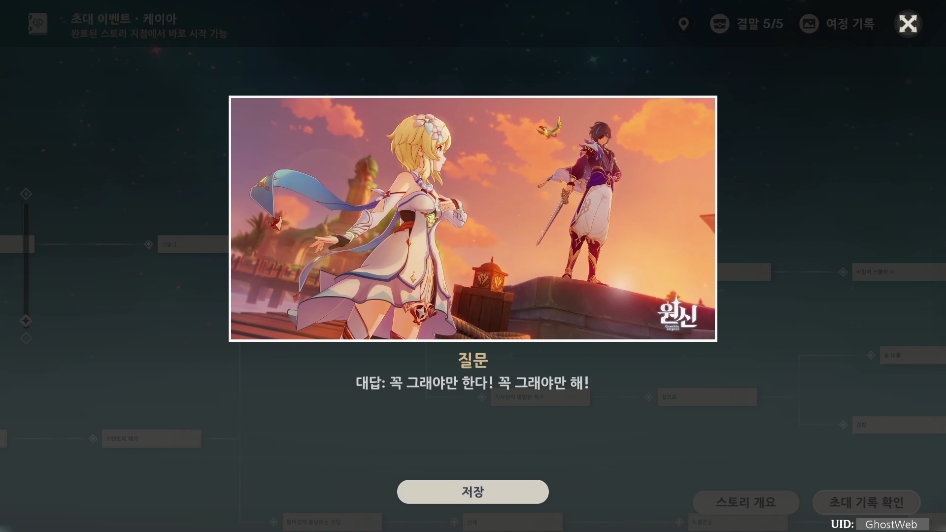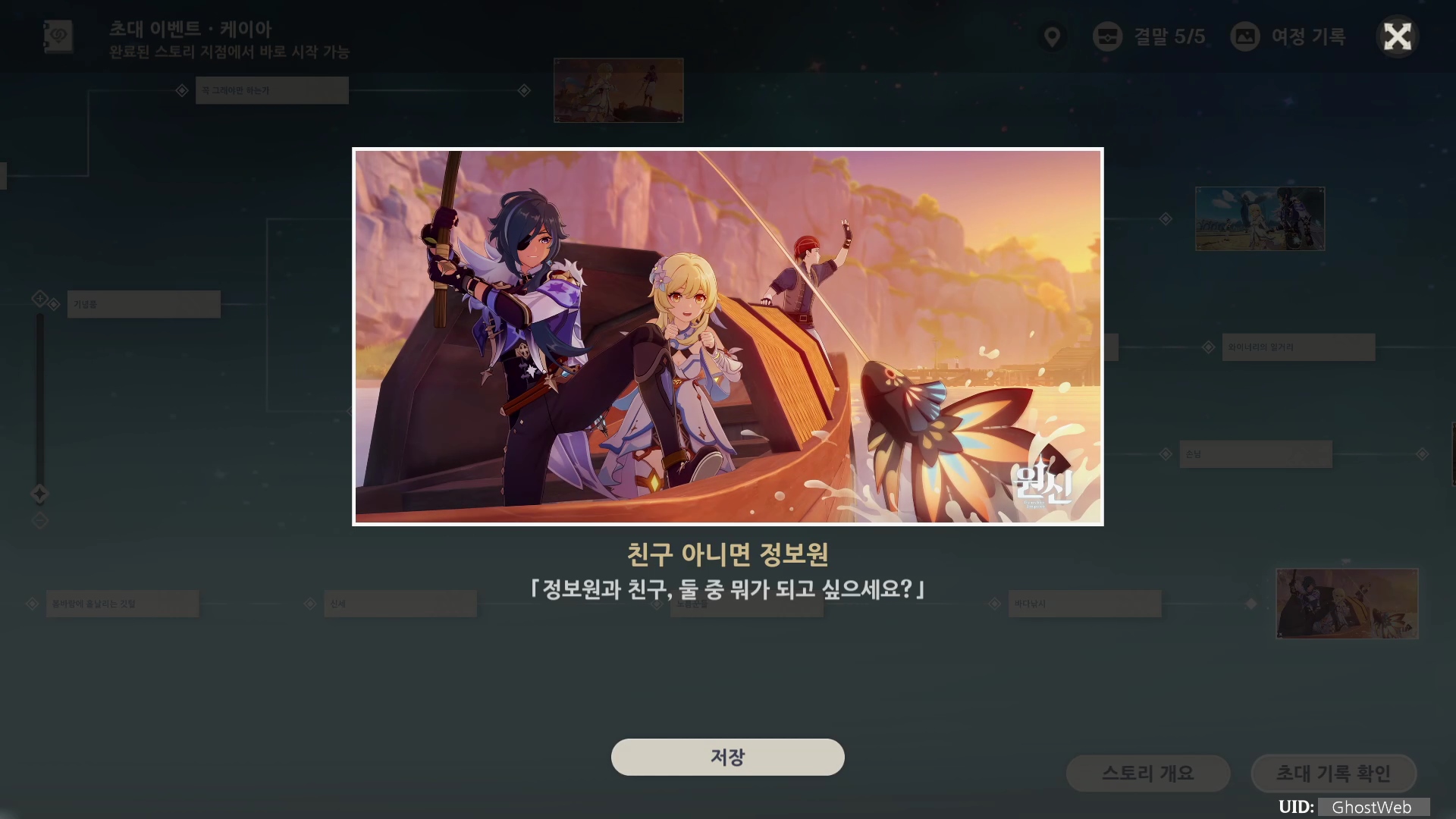| [원신] 카베 초대 이벤트 | 제1막 - 불행과 행복의 시계추 (엔딩, 스토리 분기점 정리) (0) | 2023.05.26 |
