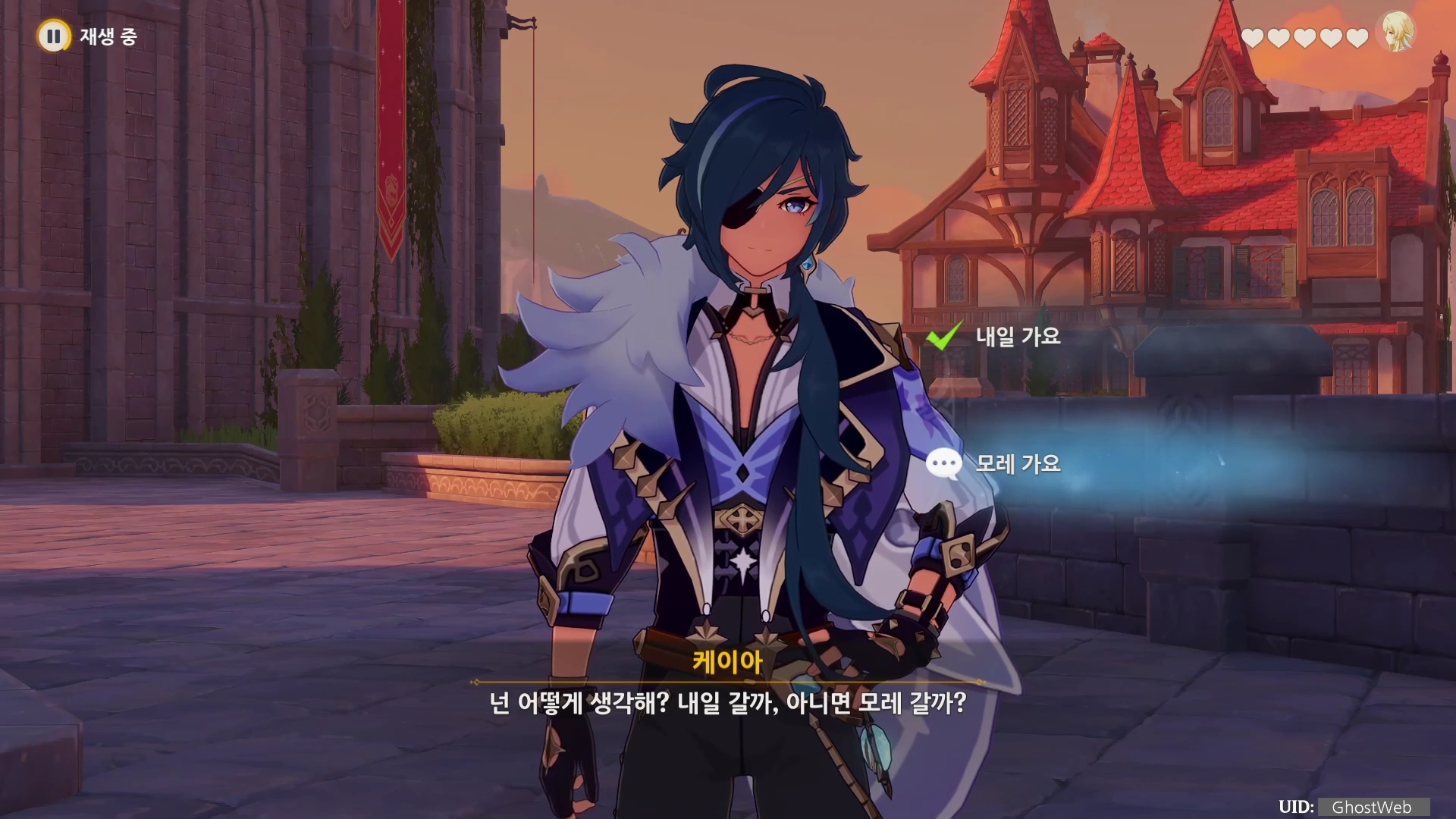 ※ 분기점 : 케이아와 대화에서 [내일 가요] 선택