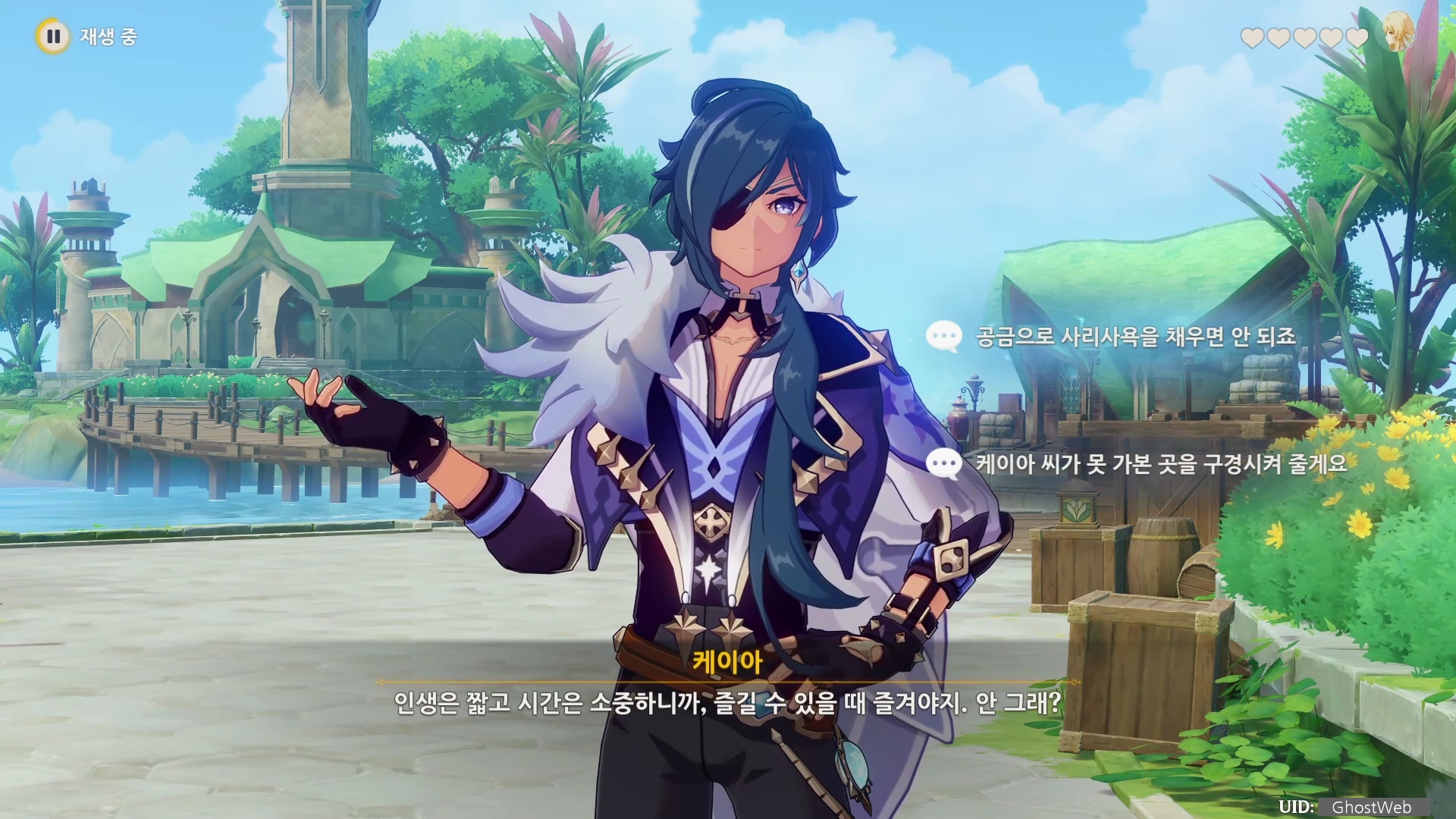 - 케이아와 놀기 위해 리월에 온 것이란 걸 잊지 말자.