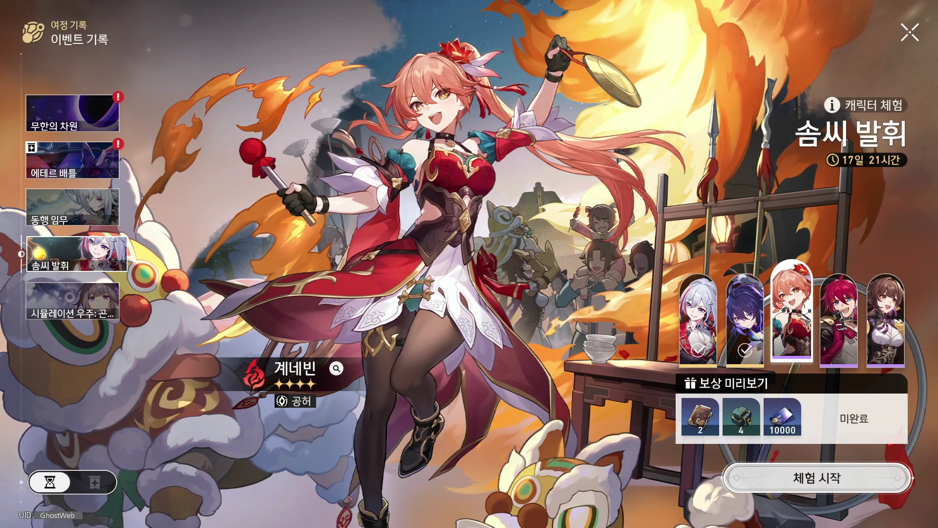 | 2 | 양치질하면서 휘파람 불기 | - 적이 연소 상태면 계네빈의 일반 공격과 전투 스킬이 해당 적에게 부여하는 상태의 피해 배율이 40% 증가한다. |