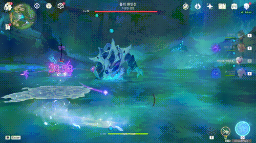 대부분 공격이 근접에 단순 패턴 공격이라 피슬, 향릉처럼 소환물과 함께 싸우는 캐릭터를 이용해도 좋을 거 같네요.