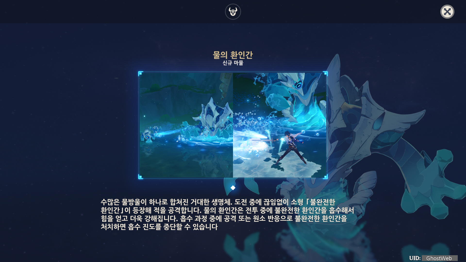 이번에는 원신 4.2 버전에서 신규 강적인 물의 환인간에 대해서 정리해도록 할게요.