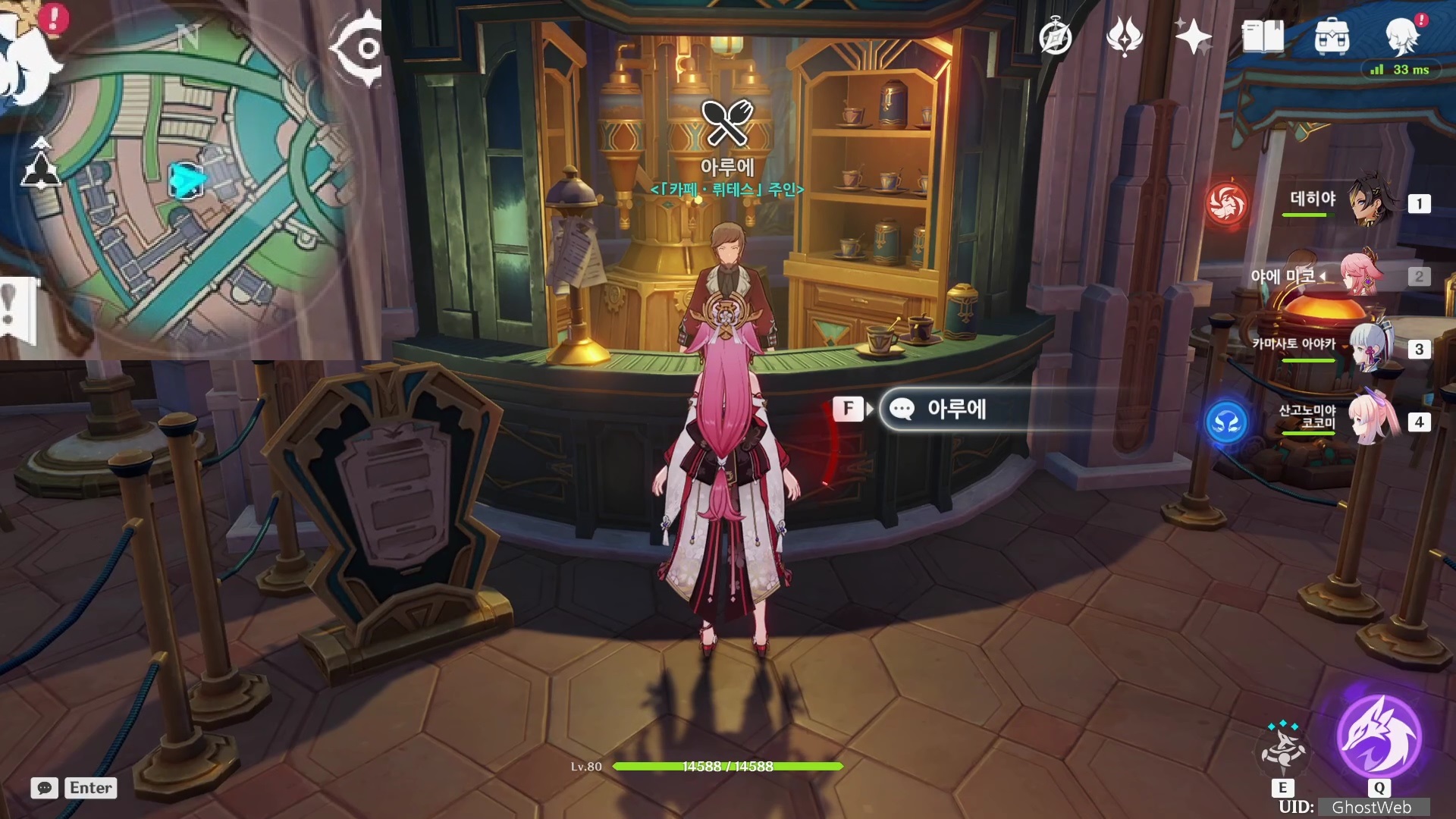 폰타인 성 중심 근처에 있는 카페 뤼테스 주인 아루에게서는 음식, 식자재, 레시피 등을 구매할 수 있어요.