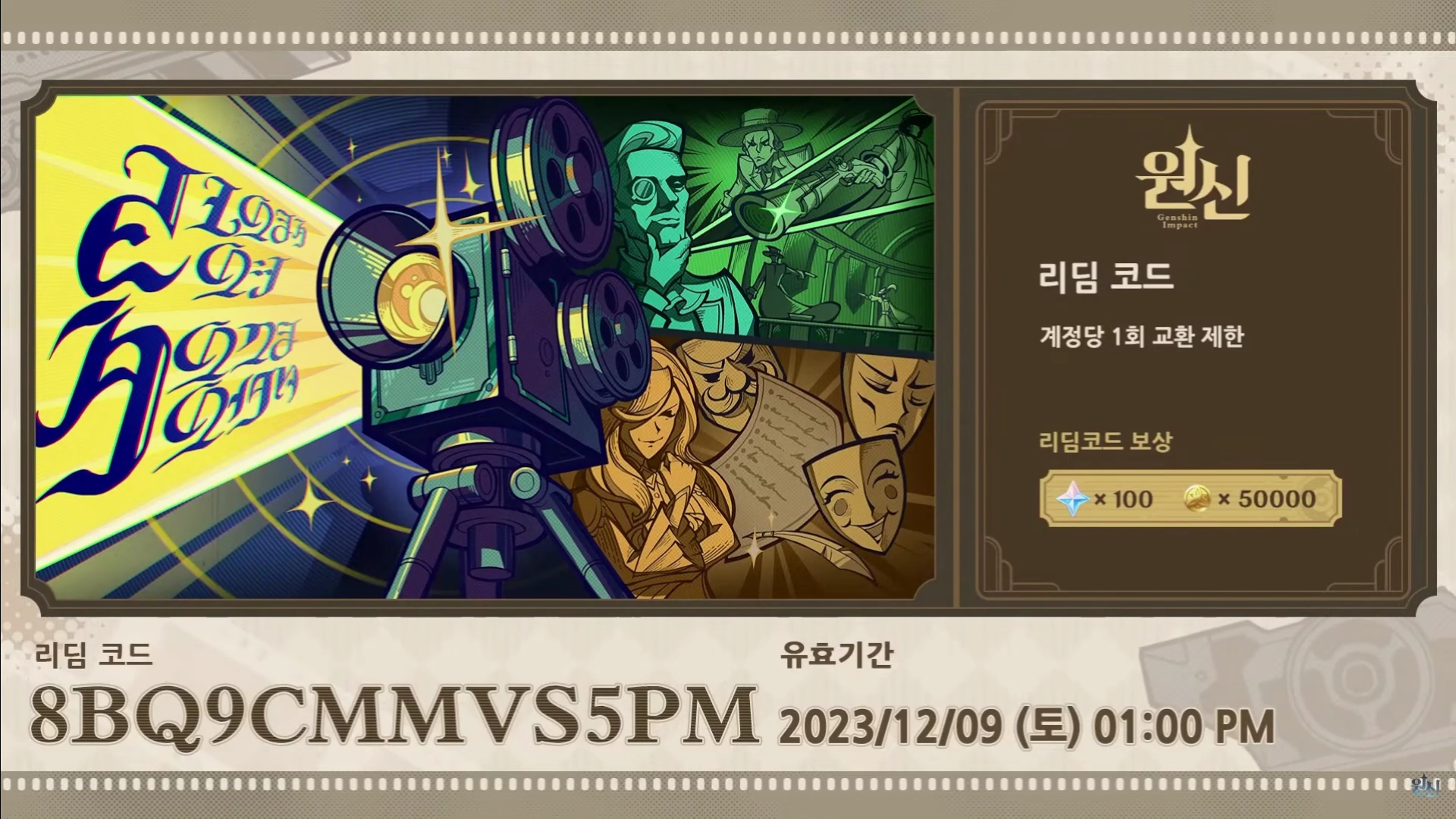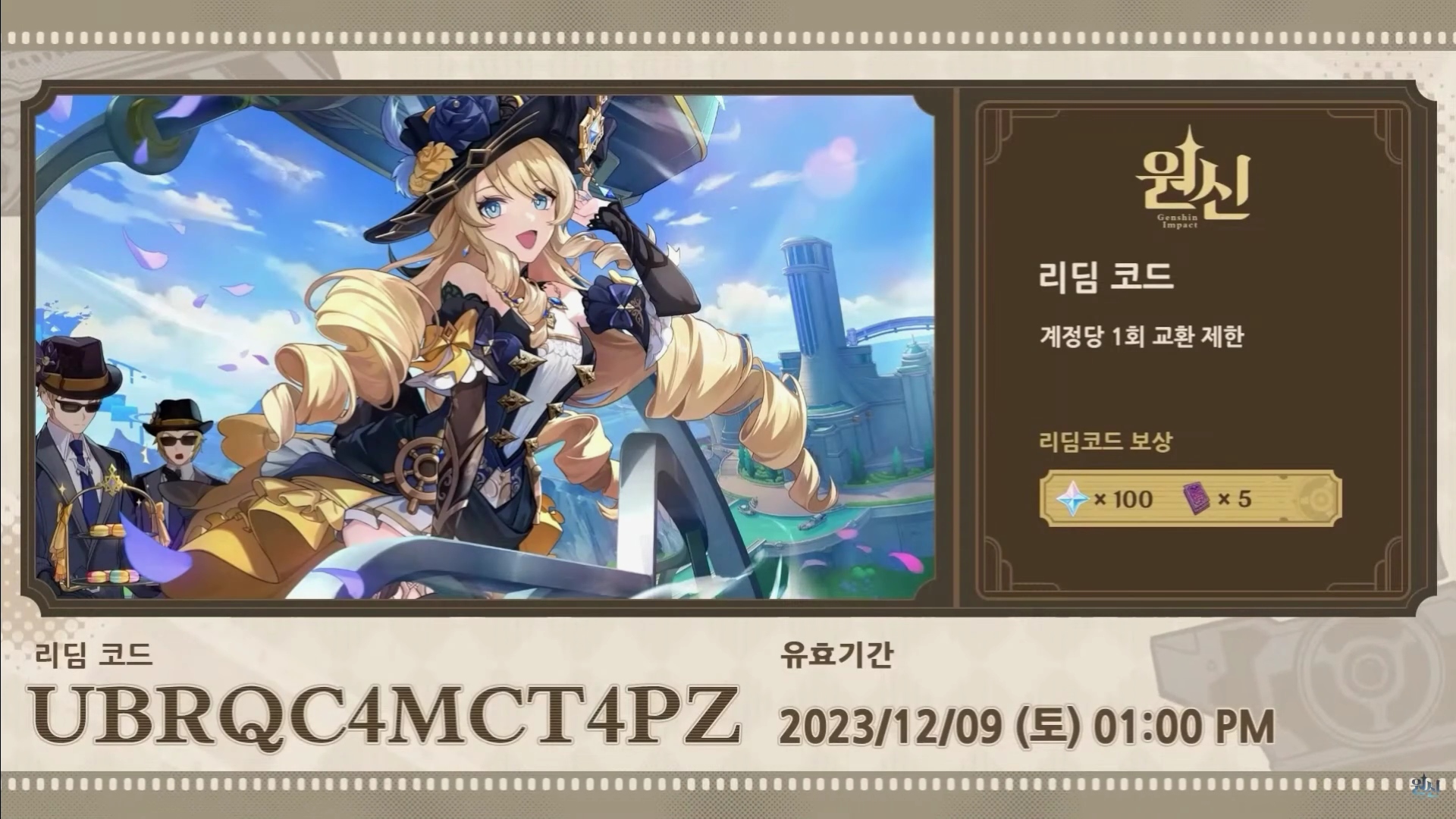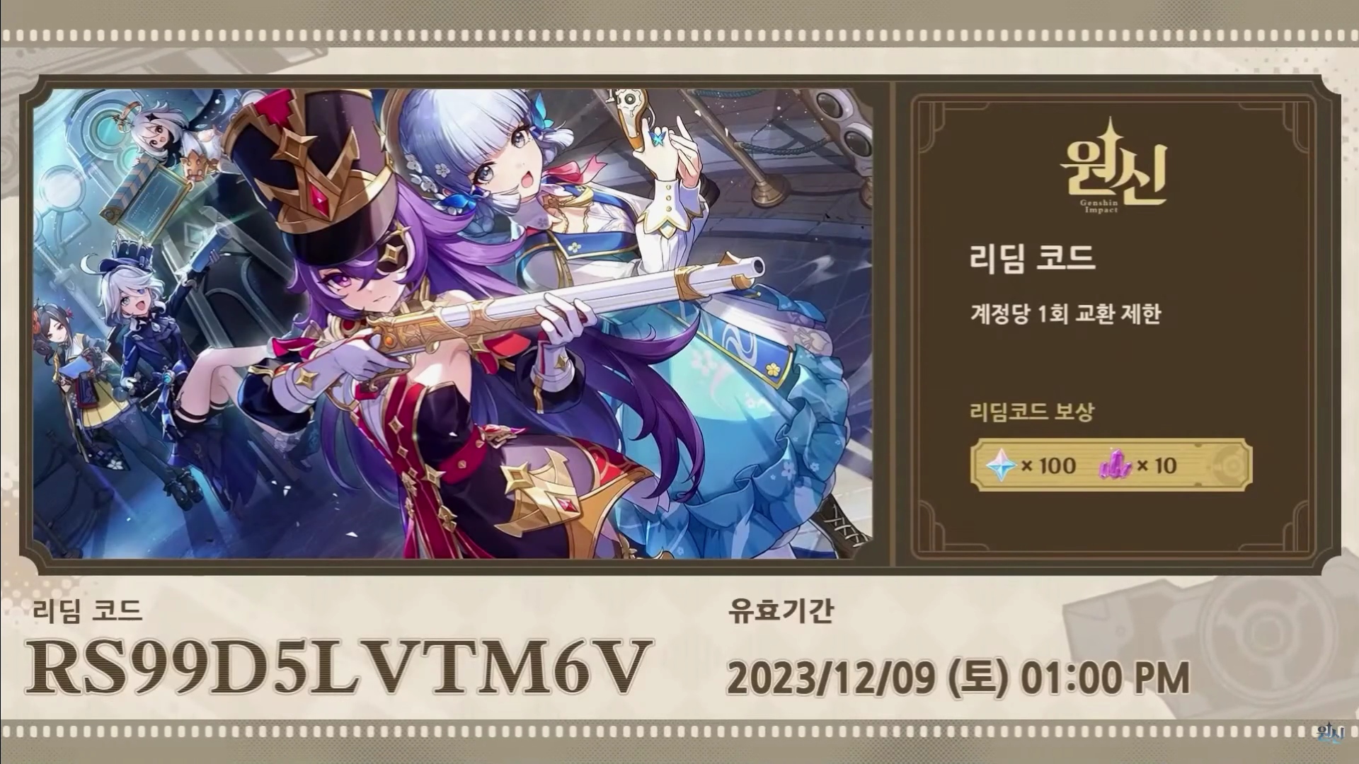 원신 업데이트 특별 방송 등을 보면 중간 마다 리딤코드라는 것을 보여주는데 이를 원신 홈페이지에서 입력하면 원석과 각 코드별로 아이템을 얻을 수 있어요. ※ 유효기간은 대부분 특별 방송