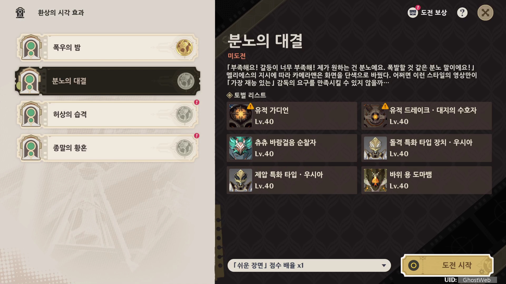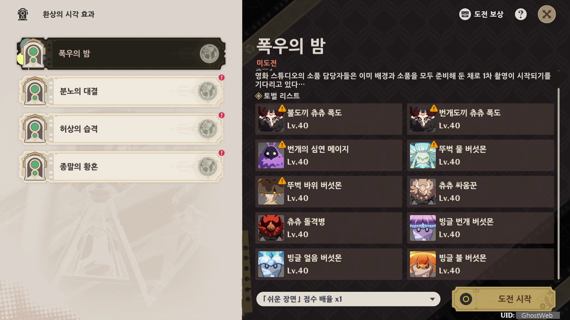 - 폭우의 밤, 분노의 대결, 허상의 습격, 종말의 황혼