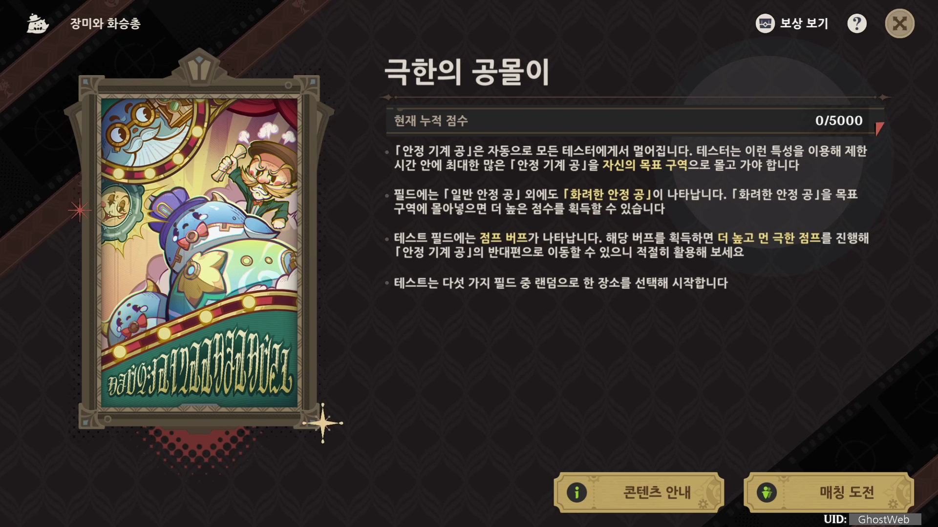 장미와 화승총은 폰티날리아 (스토리), 축제 이벤트(4개)로 구성되어 있으며 이벤트 진행을 통해 얻은 영화 티켓으로 양손검인 슈퍼 울트라 패왕 마검과 이벤트 상점에서 캐릭터 육성 소재 등으로 교환할 수 있어요.