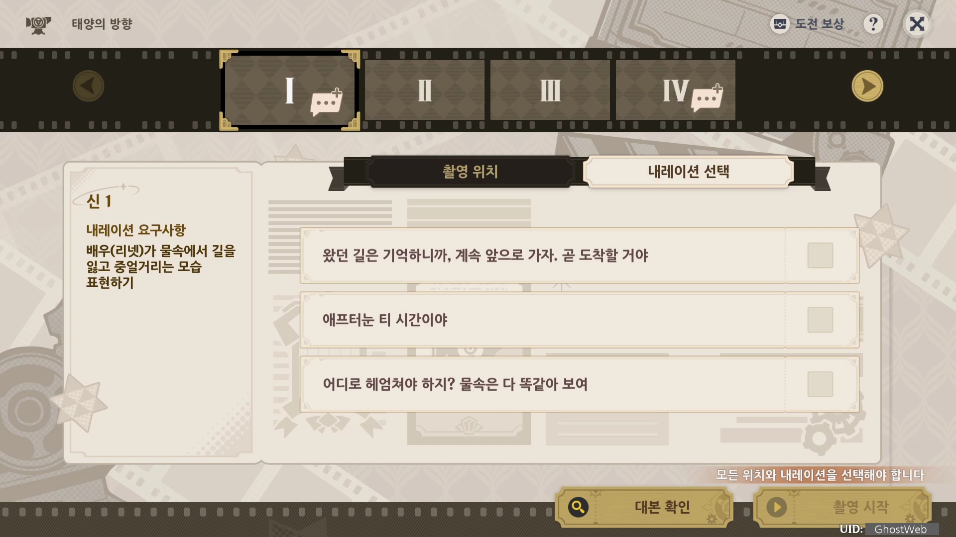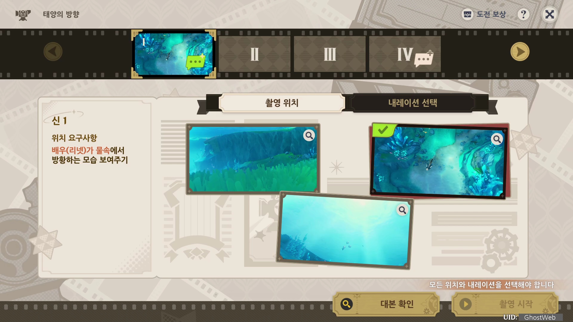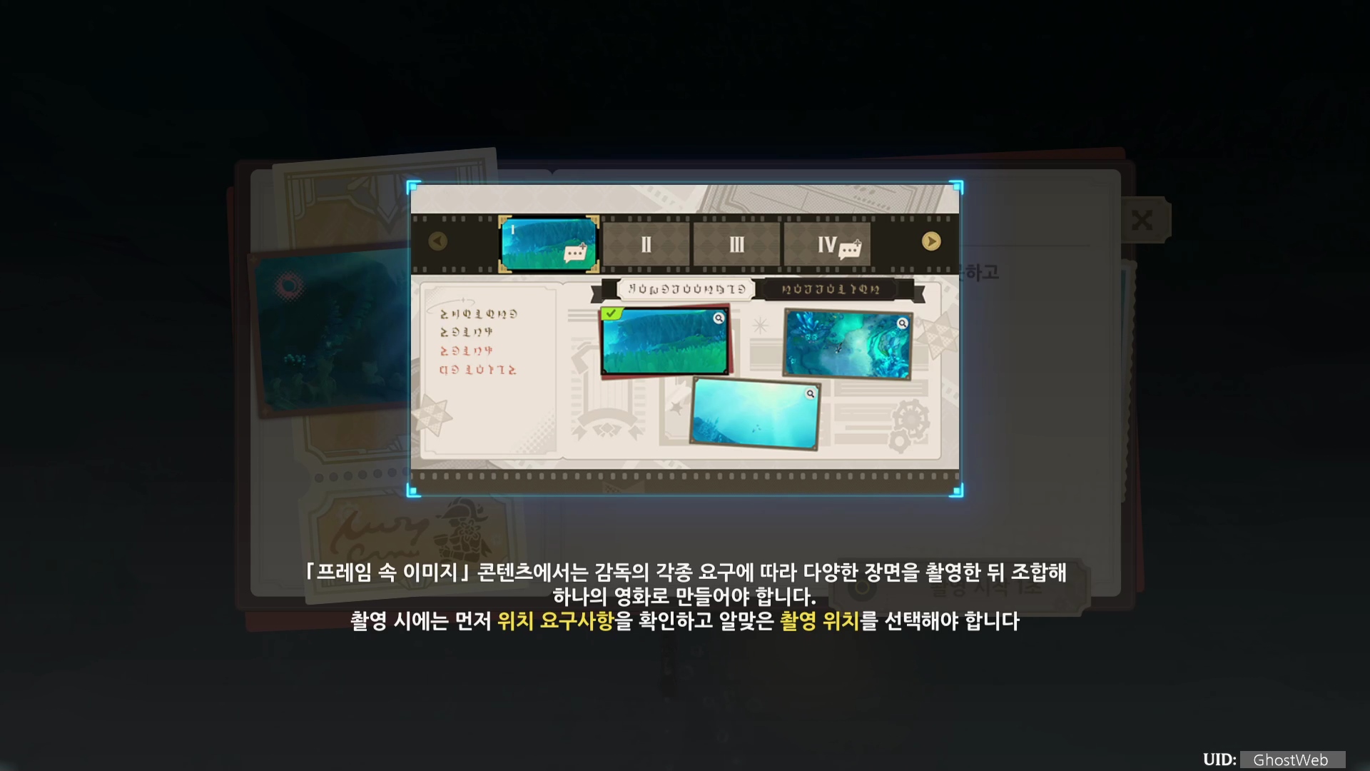 스토리 막은 총 5개로 구성되어 있으며, 푸리나, 자비에, 슈브르즈, 치오리와 이나즈마 캐릭터(아야카, 아야토, 요이미야) 등과 함께 폰타인에서 영화를 찍는 이야기에요.