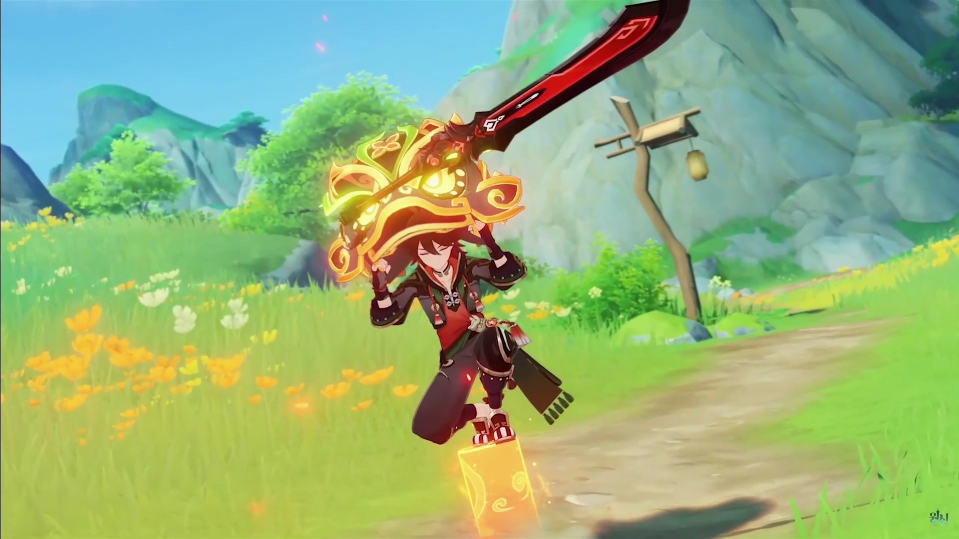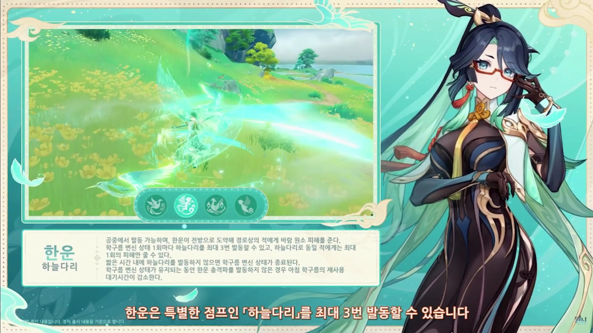 - 발명품인 기관 대나무별을 소환하여 파티 내 모든 캐릭터의 HP 회복과 주변에 있는 캐릭터의 점프력을 증가하고 필드 위의 캐릭터가 낙하 공격을 완료하면 바람 원소 범위 피해를 줌