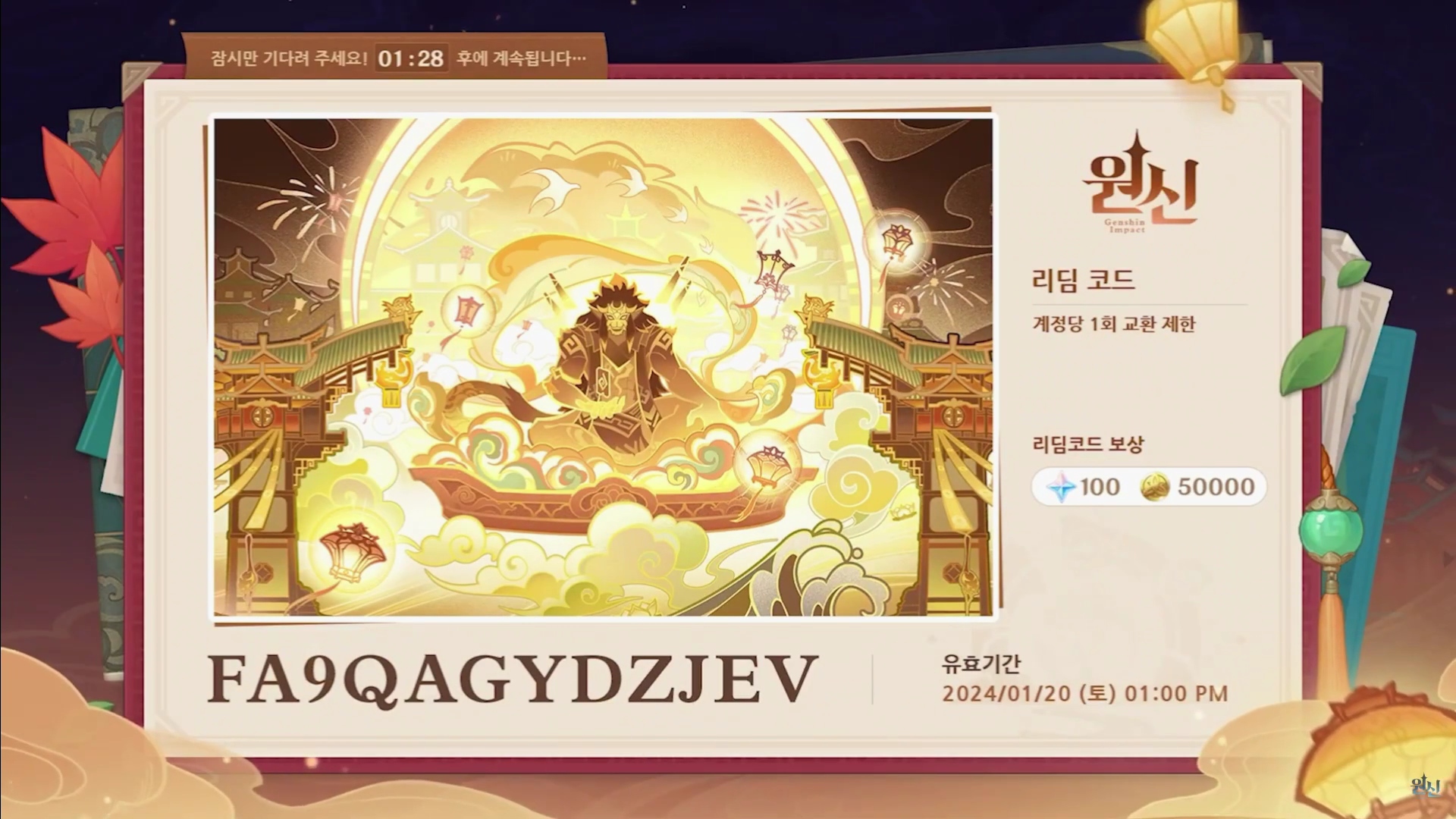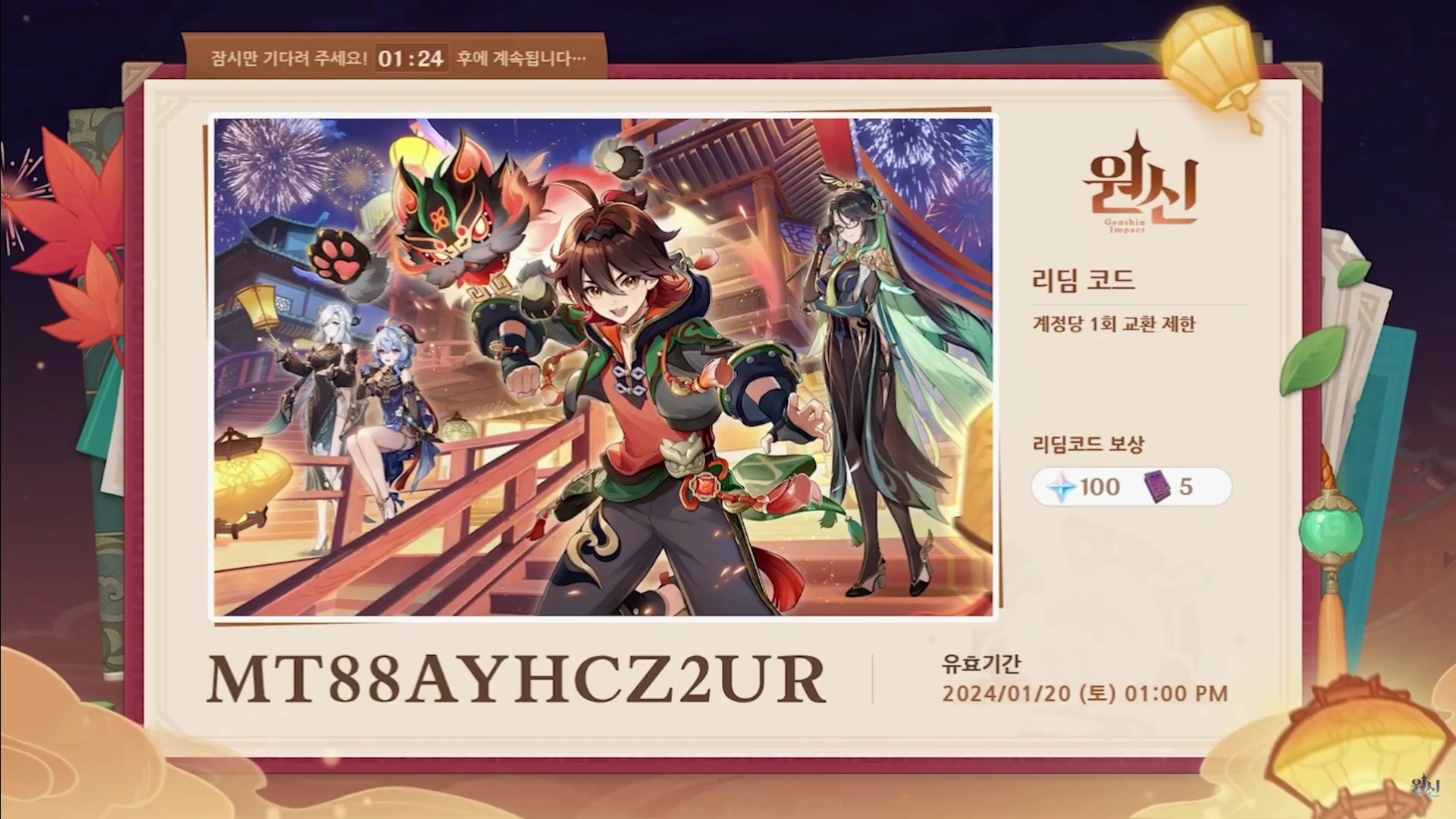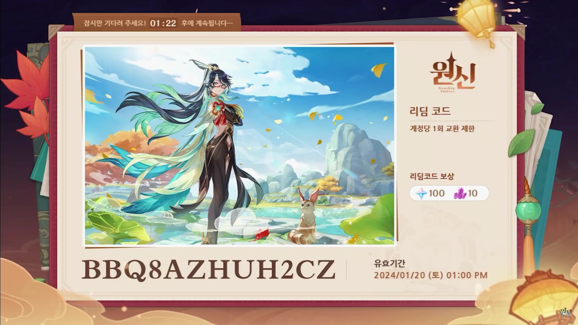 원신 업데이트 특별 방송 등을 보면 중간 마다 리딤코드라는 것을 보여주는데 이를 원신 홈페이지에서 입력하면 원석과 각 코드별로 아이템을 얻을 수 있어요. ※ 유효기간은 대부분 특별 방송