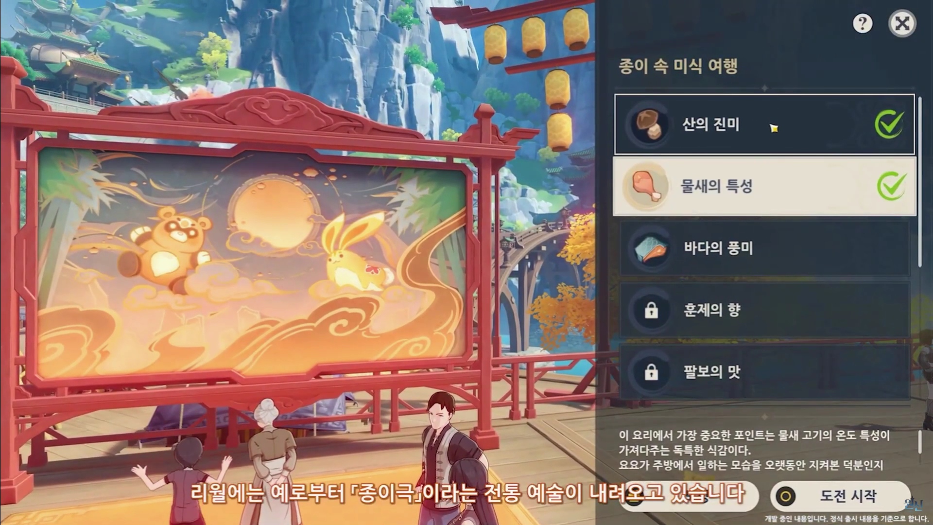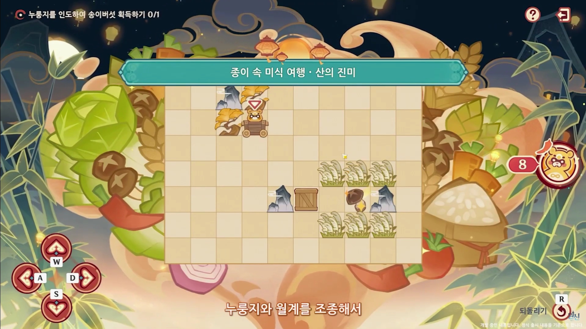 - 누룽지와 월계를 조종해 요리 재료 모으기