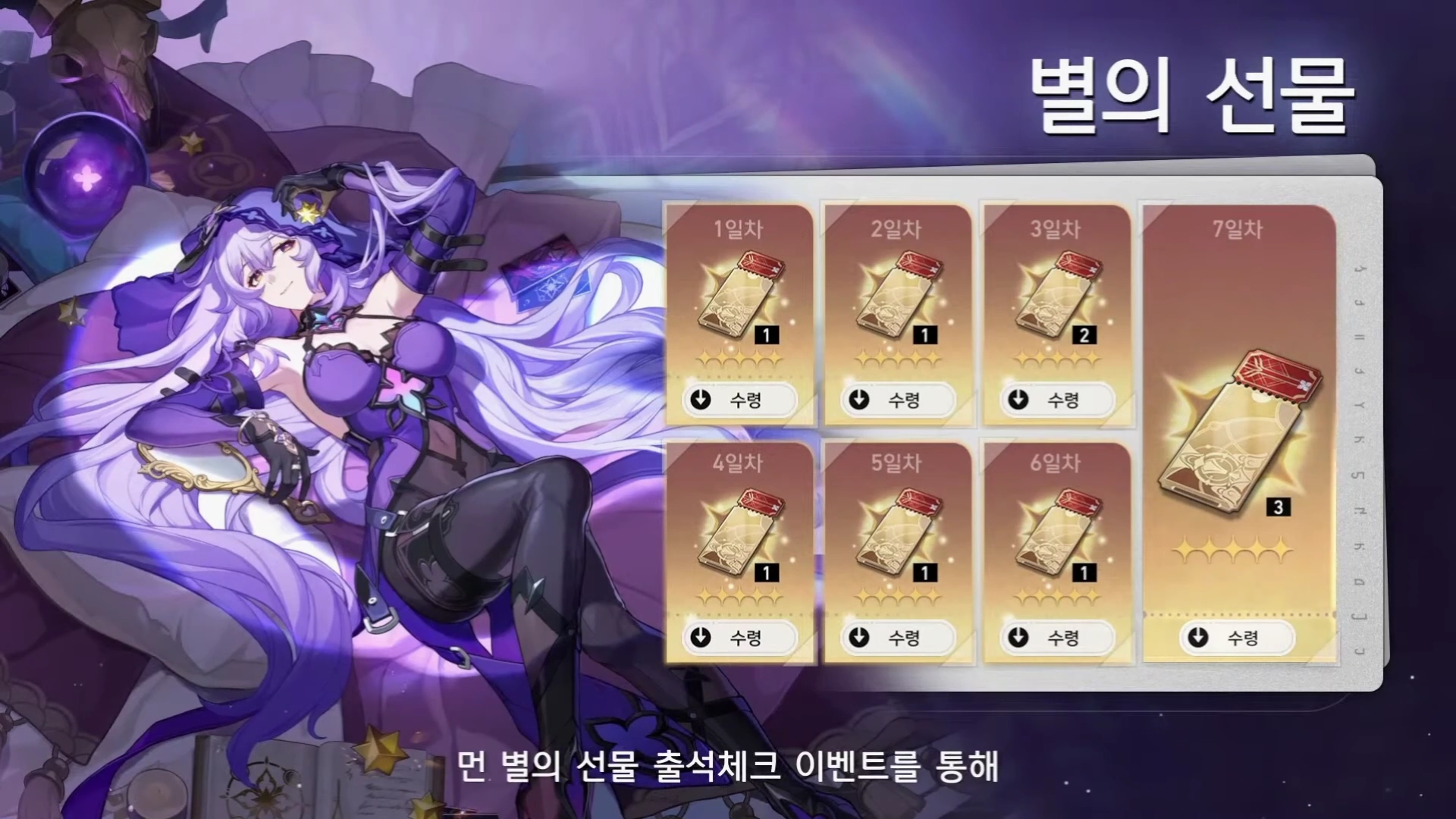 - 7일 동안 출석 체크하여 별의 궤도 전용티켓 획득