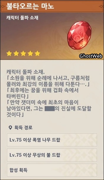 - 불타오르는 마노 가루/조각/덩이 (폭염 나무 처치)