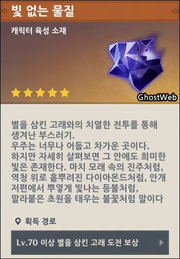 - 빛 없는 물질 (폰타인 - 이세계의 잔영 비경 도전, 별을 삼킨 고래 처치)