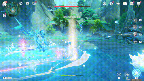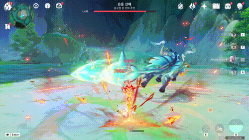 공격 패턴은 근접, 원거리가 있으며 물 형태로 상태가 변경될 때 빙결(얼음), 융해(불) 반응을 하면 그로기(넉다운) 상태가 되어 공격하기 편해요.